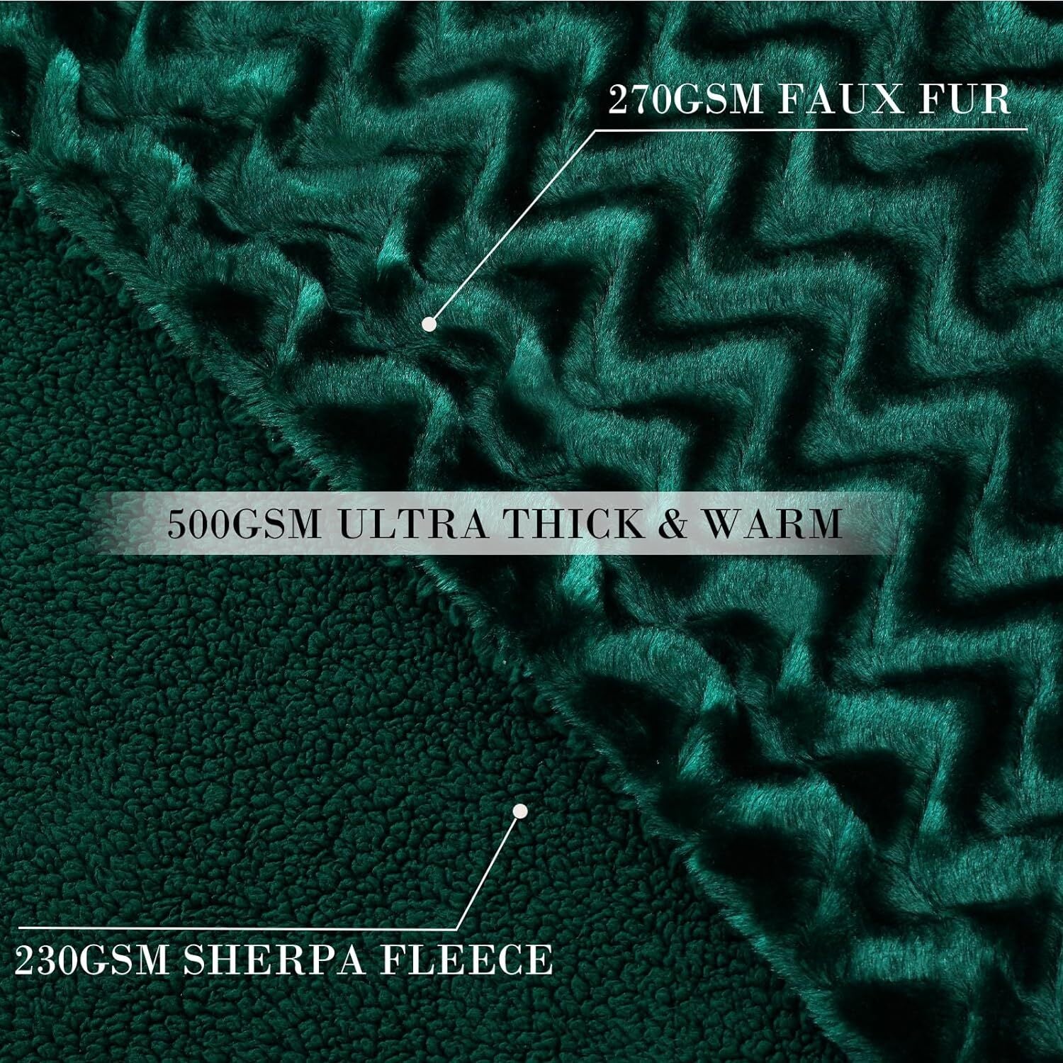 Whale Flotilla Faux Fur Sherpa Twin Size Blanket, Cozy Reversible Fuzzy Fluffy Plush Blankets with Stylish for Winter Fall, Warm and Soft, 60x80 Inch, Emerald Green