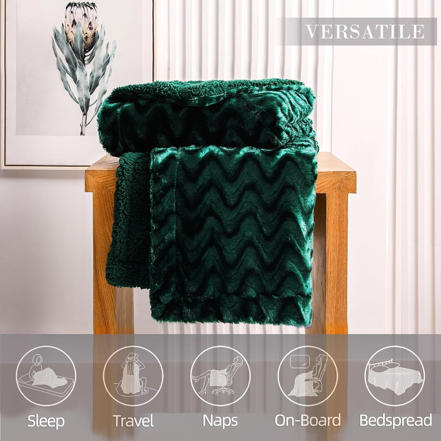 Whale Flotilla Faux Fur Sherpa King Size Blanket, Cozy Reversible Fuzzy Fluffy Plush Blankets with Stylish for Winter Fall, Warm and Soft, 90x104 Inch, Emerald Green