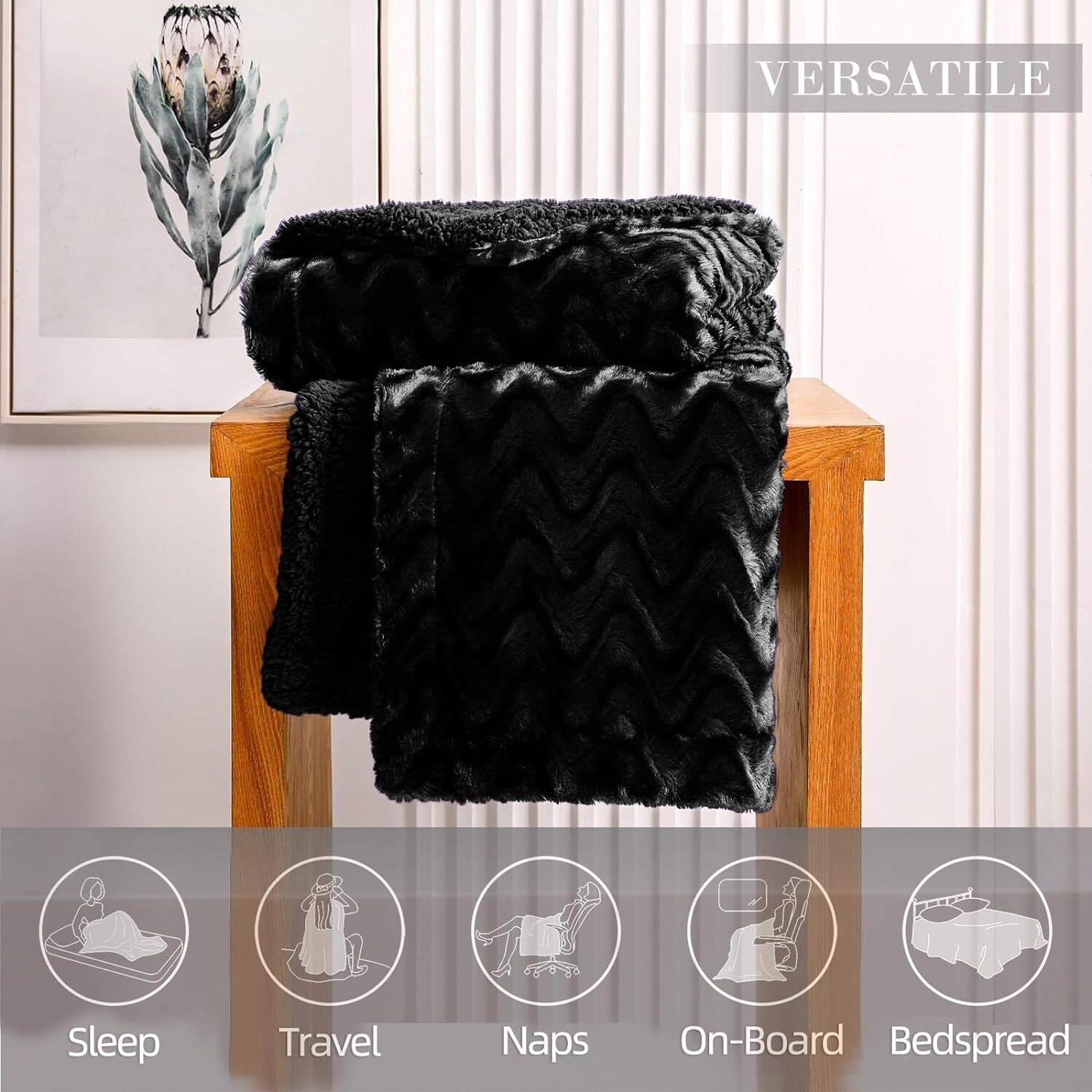 Soft Material: Are you looking for something soft, warm, silky and plush? This reversible sherpa blanket checks all the boxes. It boasts double-layered design that delivers twice the coziness and softness you'd get from an ordinary blanket. One side is lined with 270GSM soft faux fur, and the other is crafted from skin-friendly 230GSM sherpa fleece. Reversible design brings your living room a comforting and luxurious vibe.Modern Design: Adopted advanced printing and dyeing technology, this fleece blanket shines with metallic luster under the light. Flowing wave-like pattern and subtle ruching on the top side give this silky blanket a gentle ripple effect. Elegant and decent texture are fully displayed in this simple and generous design-a perfect pick for your home decor!Versatile Usages: The luxurious sherpa blanket is perfect for snuggling up on the couch and sofa, wrapping up in front of the fire and adding an extra layer of cozy warmth to your bed. Or, just throw it over your shoulder and wear outside as a stole. Add a dash of luxury to your home with this fluffy and super warn blanket is also a nice option.Easy Care: Please shake the blanket gently after taking it from the compact package, so as to remove floating lints and make it be more fluffy. Durable material makes it hold up well in the wash. Machine wash in cold water, line dry. Easy to clean and maintenance for long time use.Intimate Customer Service: We strive for providing you a satisfactory shopping experience, and pay much attention to your real feelings.If you have any problems,concerns or suggestions, please feel free to tell us. We have professional customer service team to offer round-the-clock online help for you.
