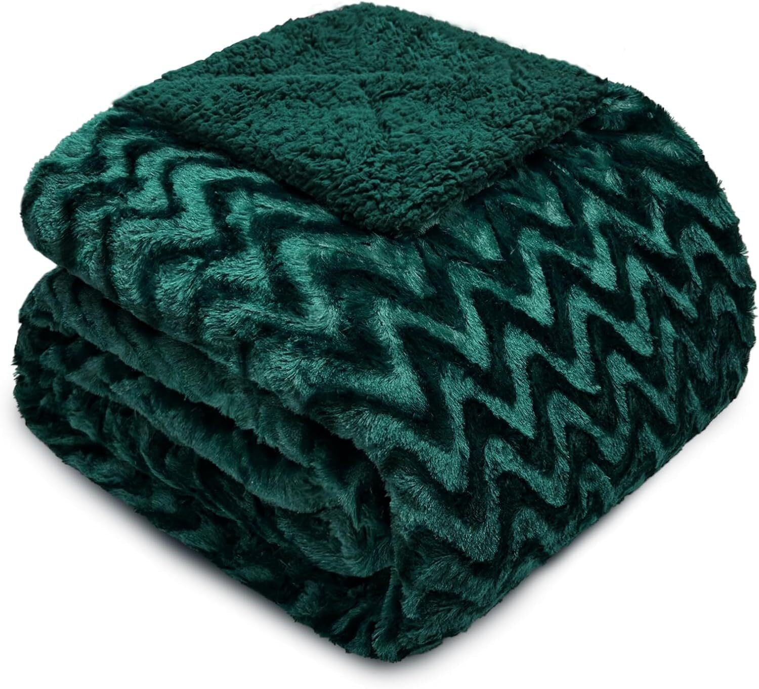 Whale Flotilla Faux Fur Sherpa Queen Size Blanket, Cozy Reversible Fuzzy Fluffy Plush Blankets with Stylish for Winter Fall, Warm and Soft, 90x90 Inch, Emerald Green