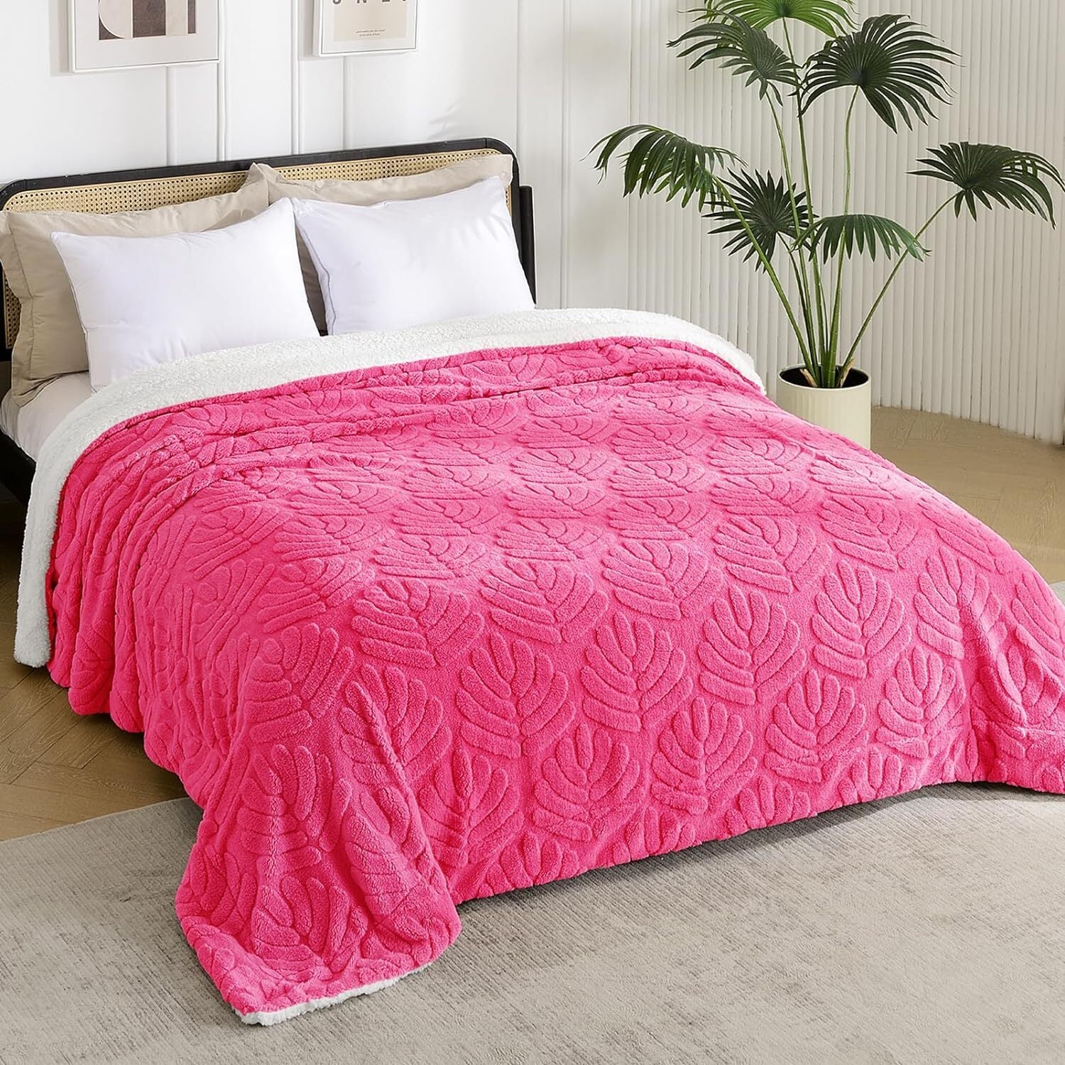 Plush and Soft: The luxury double layered sherpa blanket features 240gsm fuzzy fleece and 240gsm sherpa fabric that offers pleasant warmth and softness all year round, especially for fall and winterFashion and Stylish: The plush blanket is extremely comfortable and fashionable. It is designed with 3D jacquard pattern, which could add elegance and brightness to your room. In addition, we also offer a variety of colors and sizes for you to choose from, which easily matches your home decor.Versatile Usage: The stylish blanket is oversized 60x80 inch. It not only provides warmth as a thick blanket at night, but also can be used as a personalized throw when you take a nap or watch TV on the sofa. The blanket is lightweight and easy to carry as a travel blanket and camping blanket. More than that, it could be considered as bedspreads, coverlets, sofa cover and so on.Gift Ideas for Family: Our throw blanket with appealing design and soft tactile will greatly impress your loved ones, that would be such a great idea as Christmas gift for your family and friends.Washing Instruction: Durable material makes the blanket machine washable and dryer friendly. Machine wash cold and tumble dry low. No shedding, shrinking or fading after wash. Tips: this fluffy throw blankets are tightly packaged to protect environment. After taking it out from the compact package, please shake it gently and wait a few hours to be more fluffy.