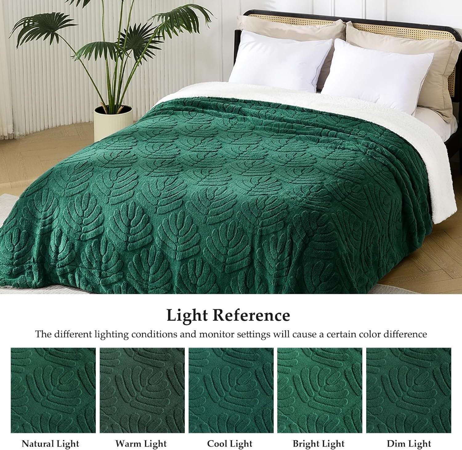 Plush and Soft: The luxury double layered sherpa blanket features 240gsm fuzzy fleece and 240gsm sherpa fabric that offers pleasant warmth and softness all year round, especially for fall and winterFashion and Stylish: The plush blanket is extremely comfortable and fashionable. It is designed with 3D jacquard pattern, which could add elegance and brightness to your room. In addition, we also offer a variety of colors and sizes for you to choose from, which easily matches your home decor.Versatile Usage: The stylish blanket is 90x104 inch. It not only provides warmth as a thick blanket at night, but also can be used as a personalized throw when you take a nap or watch TV on the sofa. The blanket is lightweight and easy to carry as a travel blanket and camping blanket. More than that, it could be considered as bedspreads, coverlets, sofa cover and so on.Gift Ideas for Family: Our throw blanket with appealing design and soft tactile will greatly impress your loved ones, that would be such a great idea as Christmas gift for your family and friends.Washing Instruction: Durable material makes the blanket machine washable and dryer friendly. Machine wash cold and tumble dry low. No shedding, shrinking or fading after wash. Tips: this fluffy throw blankets are tightly packaged to protect environment. After taking it out from the compact package, please shake it gently and wait a few hours to be more fluffy.