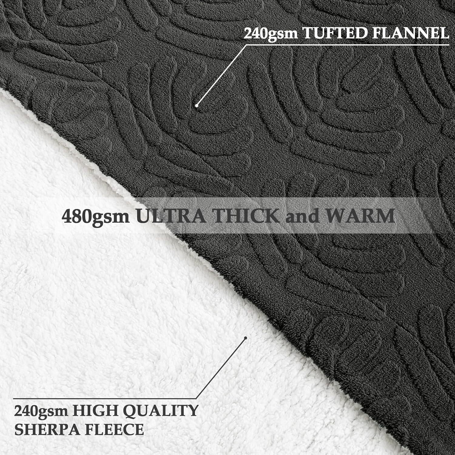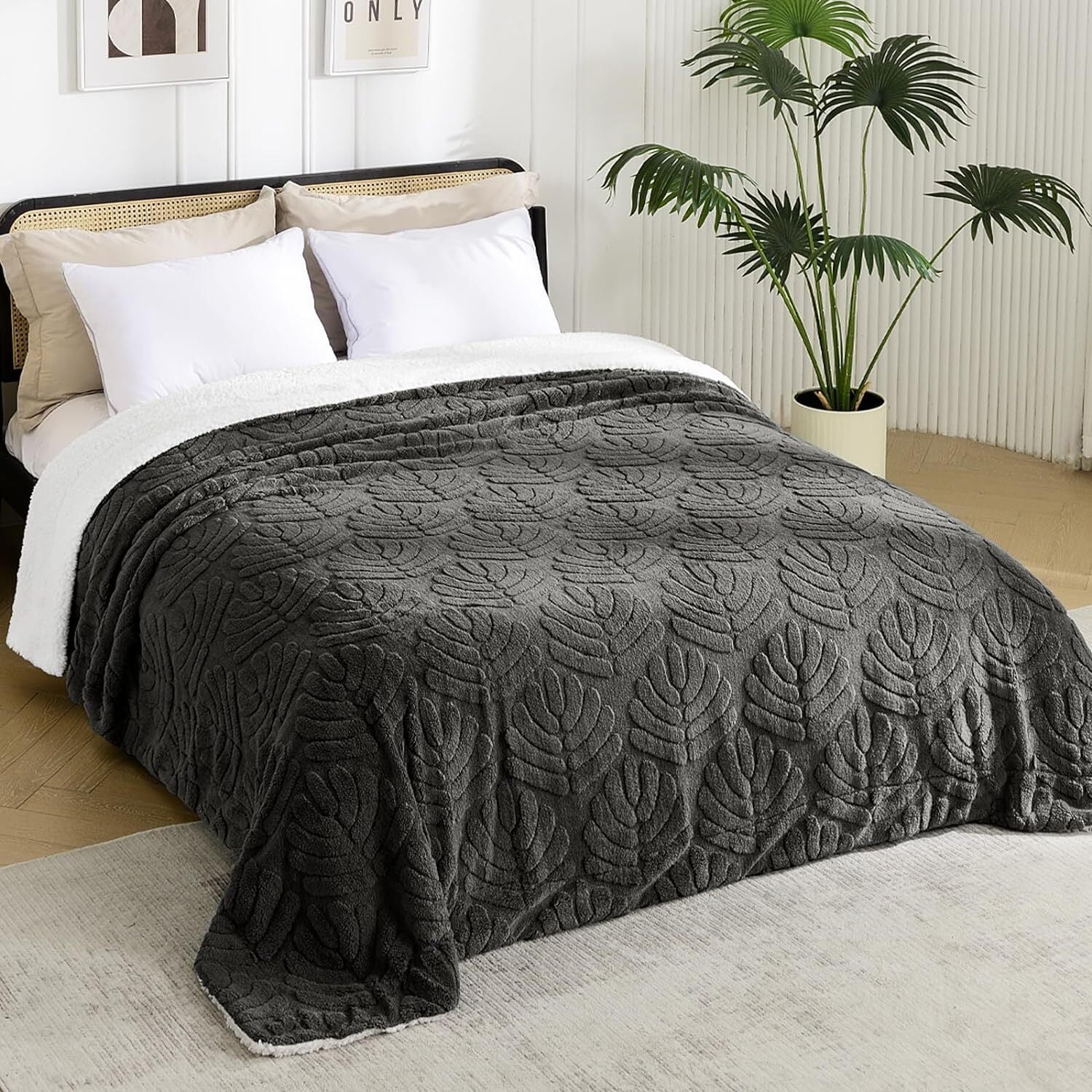 Plush and Soft: The luxury double layered sherpa blanket features 240gsm fuzzy fleece and 240gsm sherpa fabric that offers pleasant warmth and softness all year round, especially for fall and winterFashion and Stylish: The plush blanket is extremely comfortable and fashionable. It is designed with 3D jacquard pattern, which could add elegance and brightness to your room. In addition, we also offer a variety of colors and sizes for you to choose from, which easily matches your home decor.Versatile Usage: The stylish blanket is 90x104 inch. It not only provides warmth as a thick blanket at night, but also can be used as a personalized throw when you take a nap or watch TV on the sofa. The blanket is lightweight and easy to carry as a travel blanket and camping blanket. More than that, it could be considered as bedspreads, coverlets, sofa cover and so on.Gift Ideas for Family: Our throw blanket with appealing design and soft tactile will greatly impress your loved ones, that would be such a great idea as Christmas gift for your family and friends.Washing Instruction: Durable material makes the blanket machine washable and dryer friendly. Machine wash cold and tumble dry low. No shedding, shrinking or fading after wash. Tips: this fluffy throw blankets are tightly packaged to protect environment. After taking it out from the compact package, please shake it gently and wait a few hours to be more fluffy.