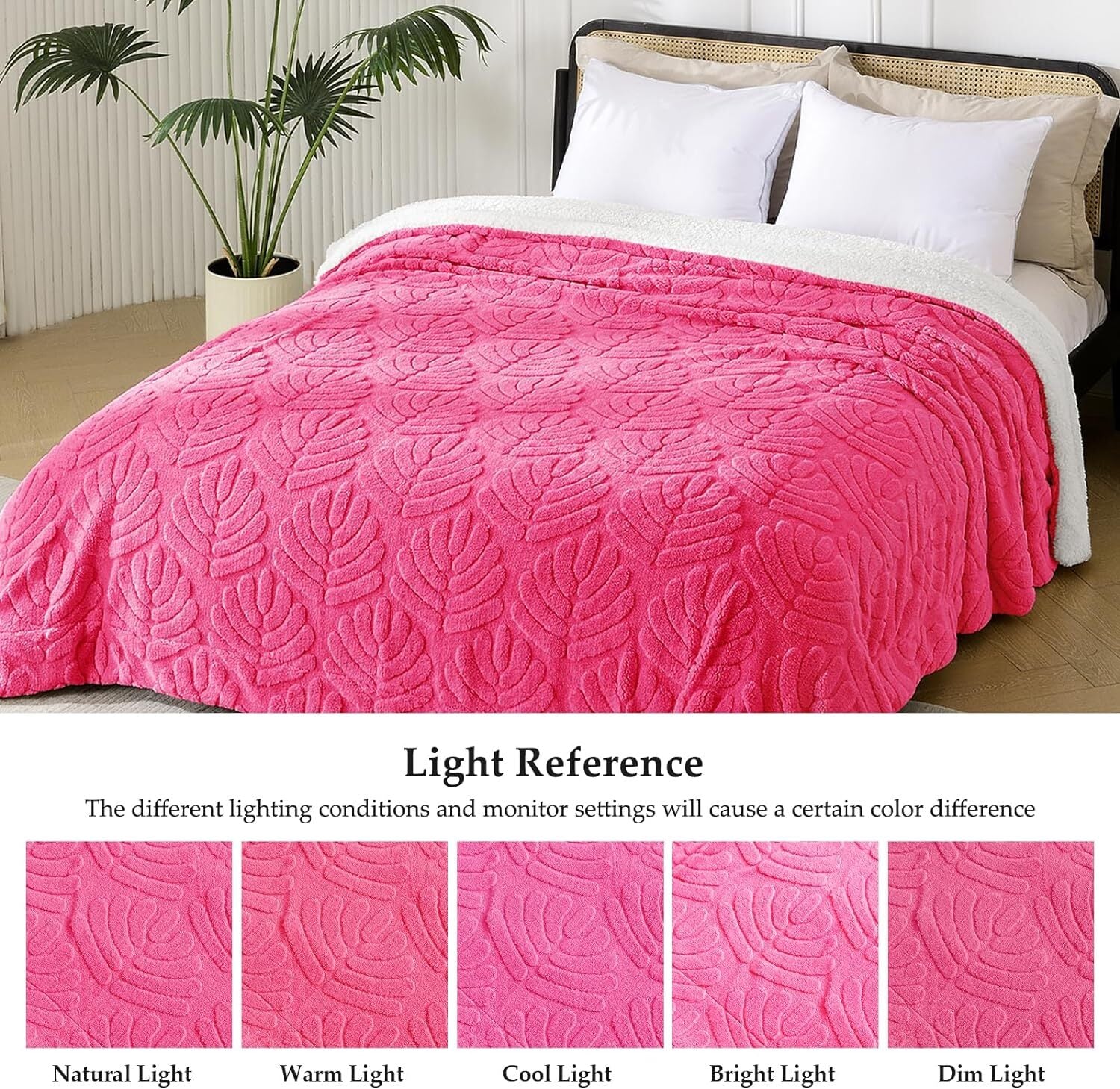 Plush and Soft: The luxury double layered sherpa blanket features 240gsm fuzzy fleece and 240gsm sherpa fabric that offers pleasant warmth and softness all year round, especially for fall and winterFashion and Stylish: The plush blanket is extremely comfortable and fashionable. It is designed with 3D jacquard pattern, which could add elegance and brightness to your room. In addition, we also offer a variety of colors and sizes for you to choose from, which easily matches your home decor.Versatile Usage: The stylish blanket is 90x104 inch. It not only provides warmth as a thick blanket at night, but also can be used as a personalized throw when you take a nap or watch TV on the sofa. The blanket is lightweight and easy to carry as a travel blanket and camping blanket. More than that, it could be considered as bedspreads, coverlets, sofa cover and so on.Gift Ideas for Family: Our throw blanket with appealing design and soft tactile will greatly impress your loved ones, that would be such a great idea as Christmas gift for your family and friends.Washing Instruction: Durable material makes the blanket machine washable and dryer friendly. Machine wash cold and tumble dry low. No shedding, shrinking or fading after wash. Tips: this fluffy throw blankets are tightly packaged to protect environment. After taking it out from the compact package, please shake it gently and wait a few hours to be more fluffy.