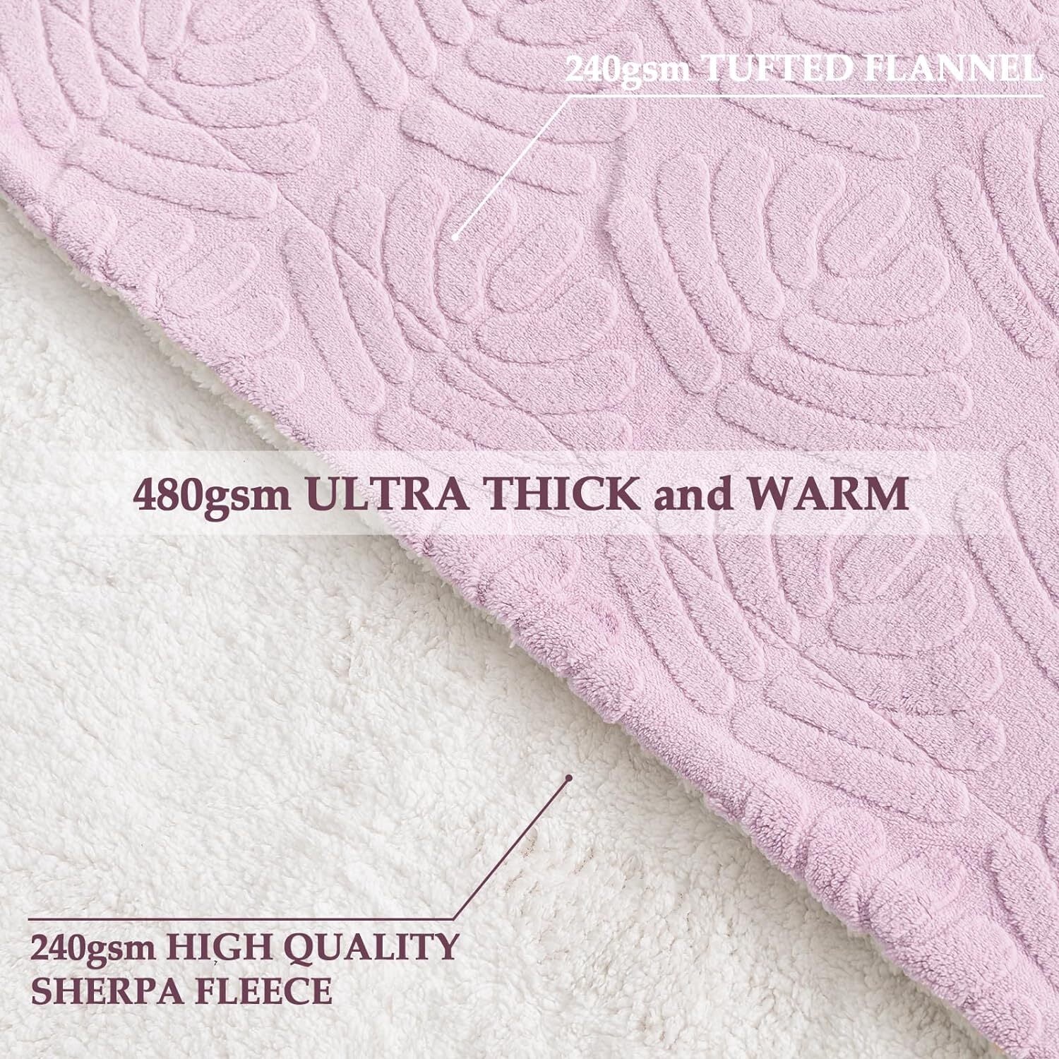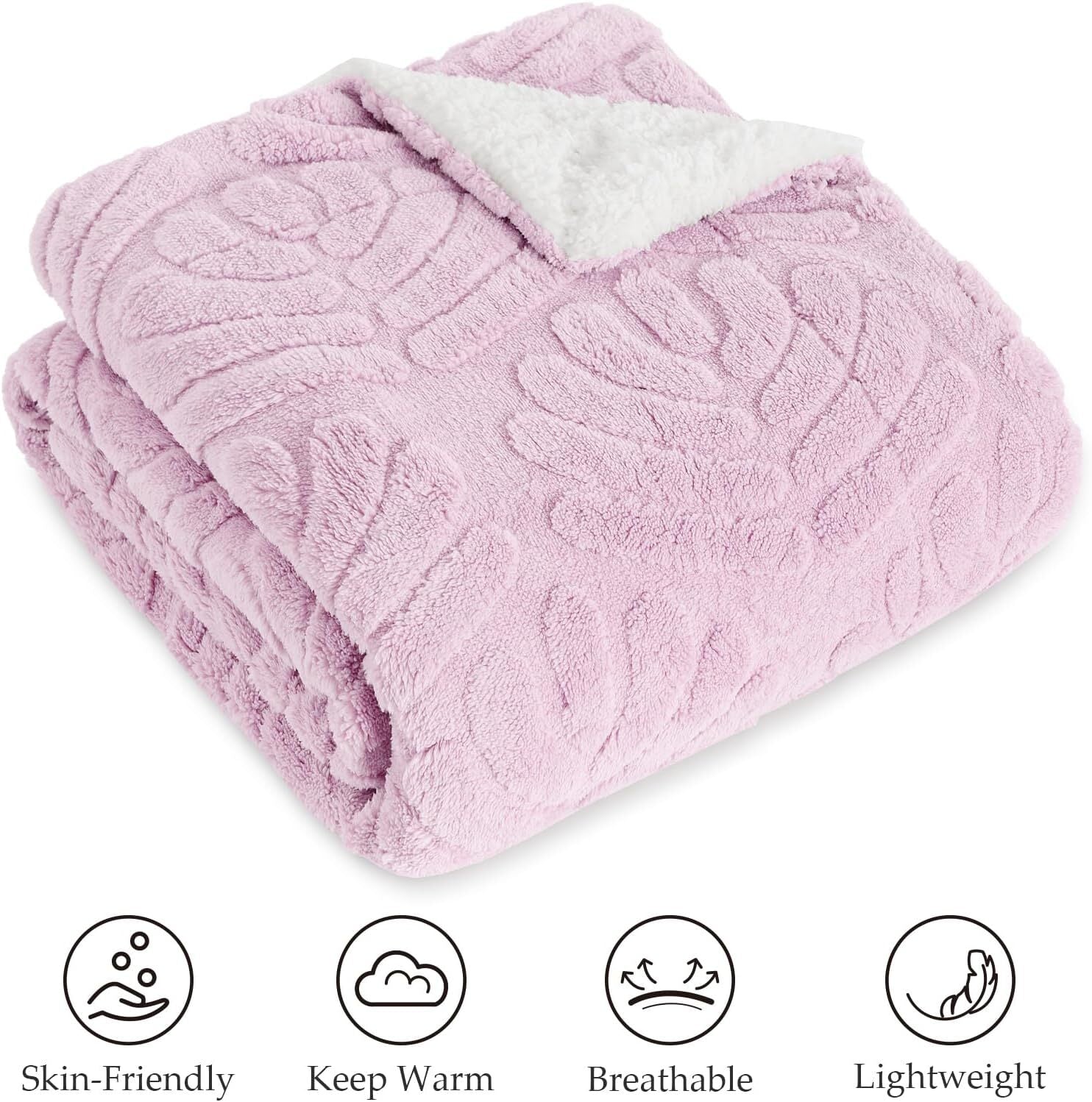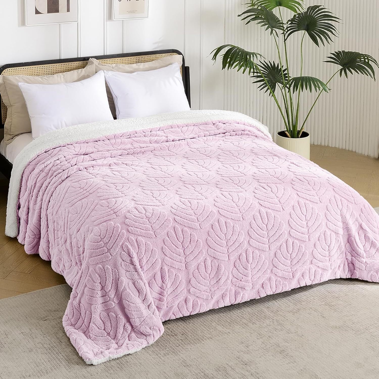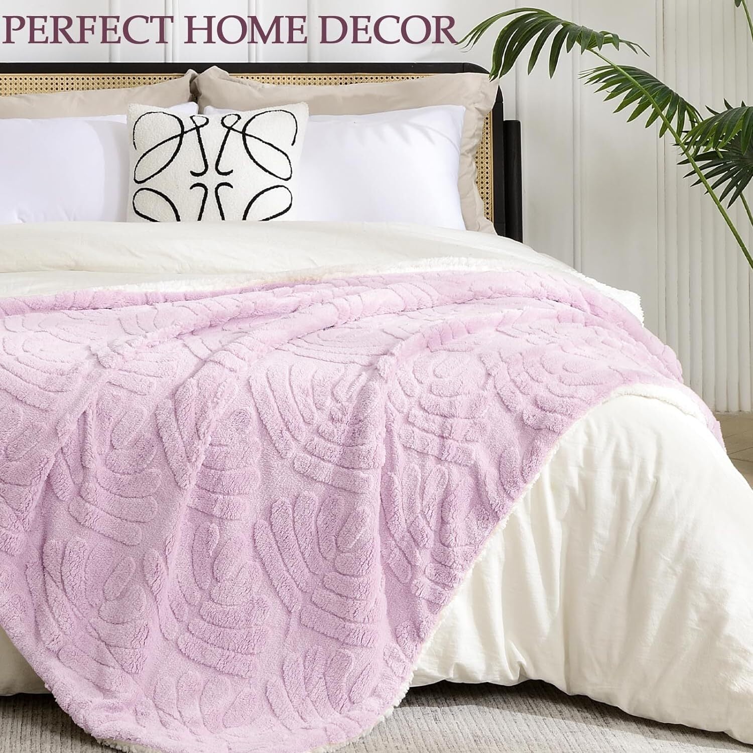 Plush and Soft: The luxury double layered sherpa blanket features 240gsm fuzzy fleece and 240gsm sherpa fabric that offers pleasant warmth and softness all year round, especially for fall and winterFashion and Stylish: The plush blanket is extremely comfortable and fashionable. It is designed with 3D jacquard pattern, which could add elegance and brightness to your room. In addition, we also offer a variety of colors and sizes for you to choose from, which easily matches your home decor.Versatile Usage: The stylish blanket is 90x90 inch. It not only provides warmth as a thick blanket at night, but also can be used as a personalized throw when you take a nap or watch TV on the sofa. The blanket is lightweight and easy to carry as a travel blanket and camping blanket. More than that, it could be considered as bedspreads, coverlets, sofa cover and so on.Gift Ideas for Family: Our throw blanket with appealing design and soft tactile will greatly impress your loved ones, that would be such a great idea as Christmas gift for your family and friends.Washing Instruction: Durable material makes the blanket machine washable and dryer friendly. Machine wash cold and tumble dry low. No shedding, shrinking or fading after wash. Tips: this fluffy throw blankets are tightly packaged to protect environment. After taking it out from the compact package, please shake it gently and wait a few hours to be more fluffy.