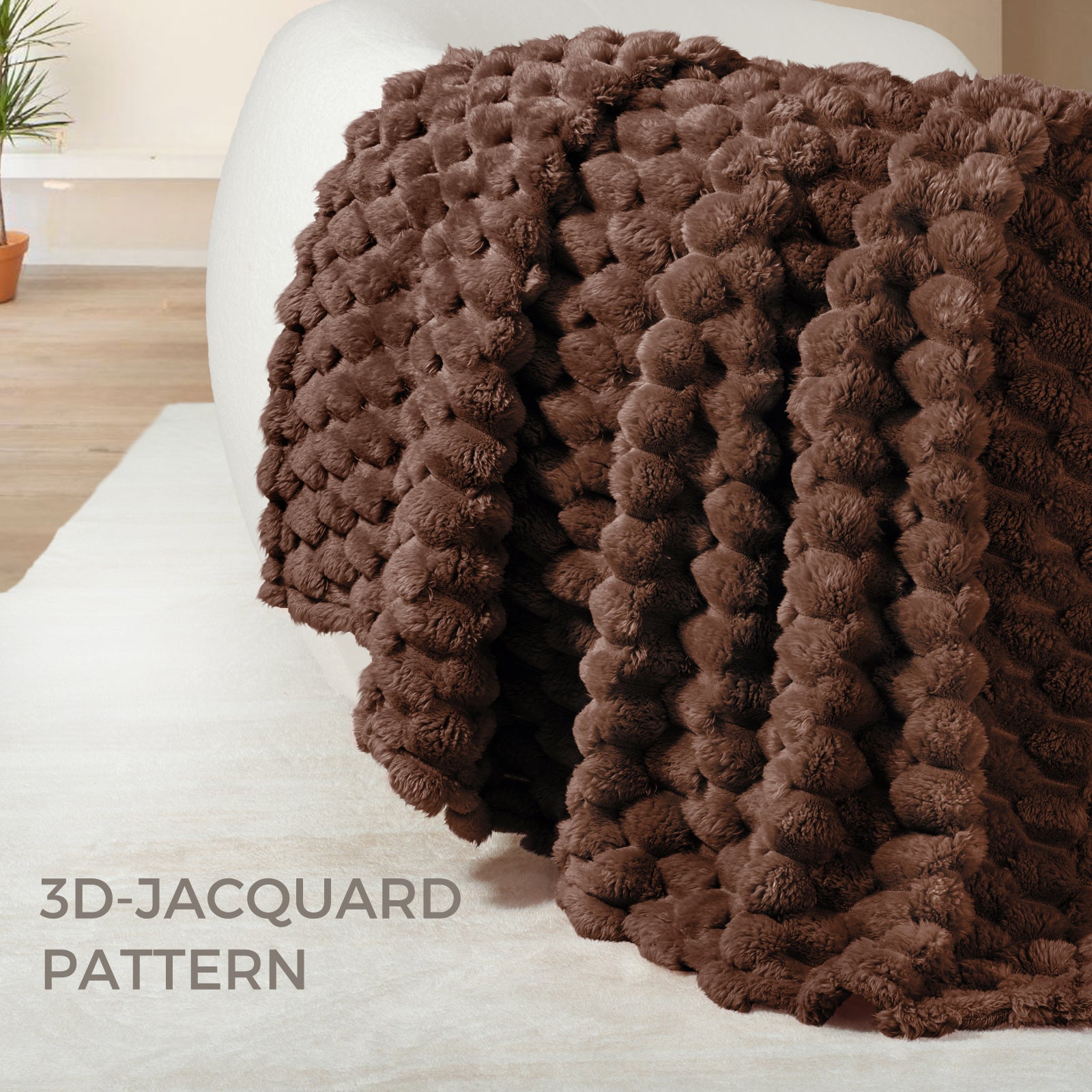 Whale Flotilla Throw Blanket for Couch with Expanded 3D-Jacquard Pattern, Fuzzy Soft Cozy Exquisite Blankets or All Season, Warm and Fluffy, 50x60 Inch,Coffee
