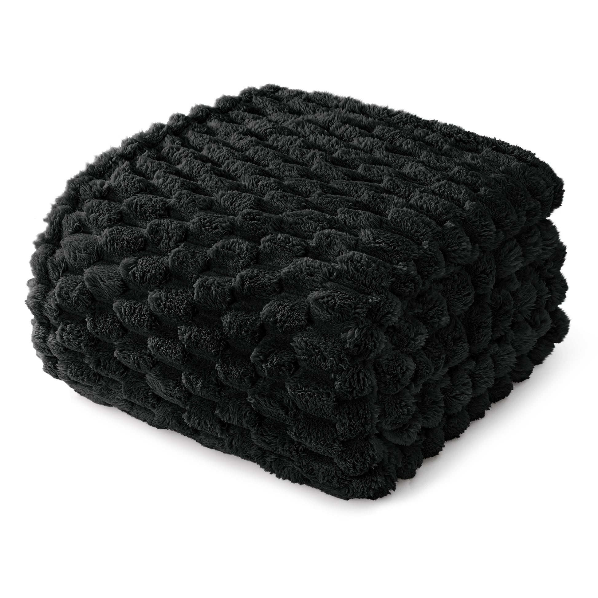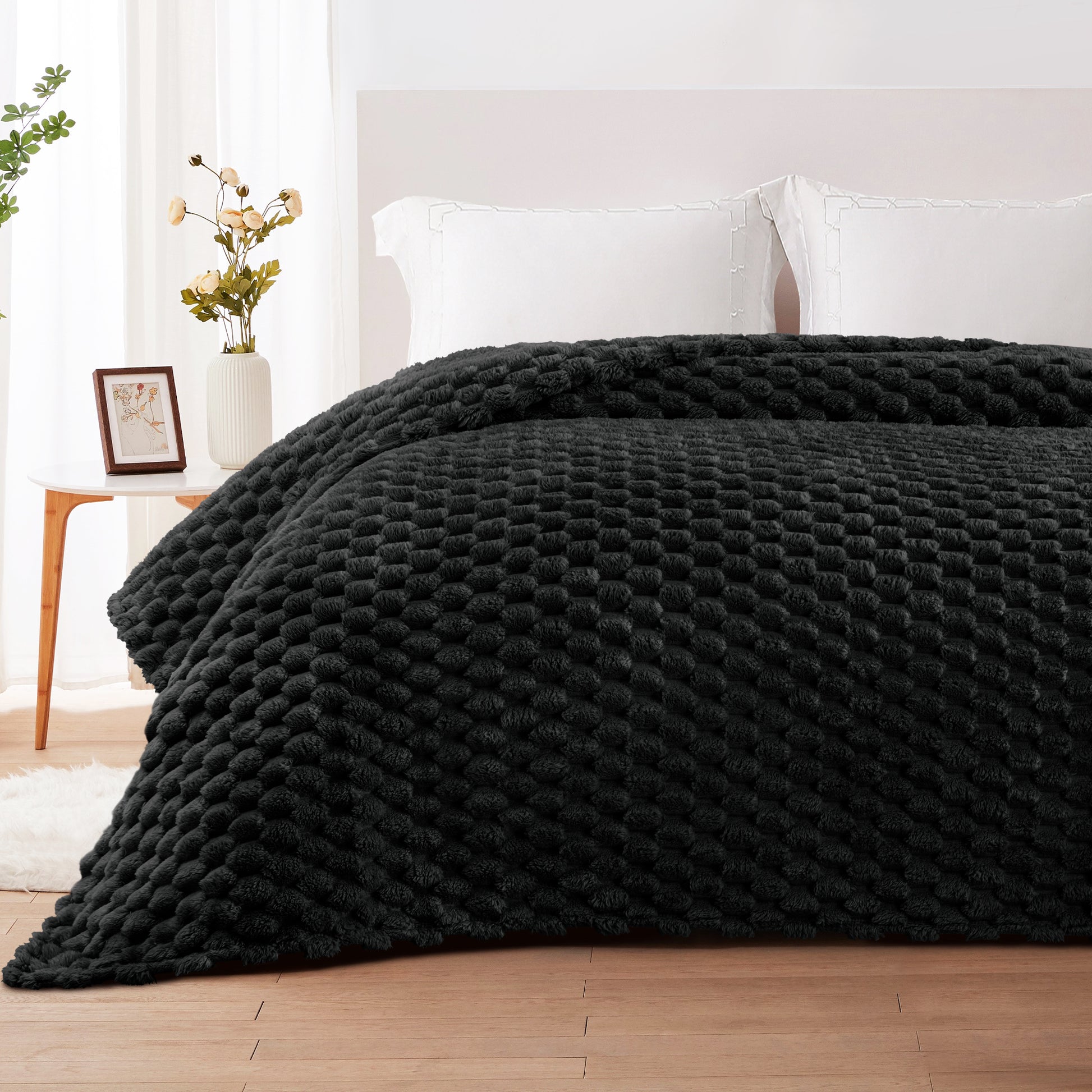 Whale Flotilla Queen Size Blanket for Bed with Expanded 3D-Jacquard Pattern, Fuzzy Soft Cozy Exquisite Blankets or All Season, Warm and Fluffy, 90x90 Inch,Black