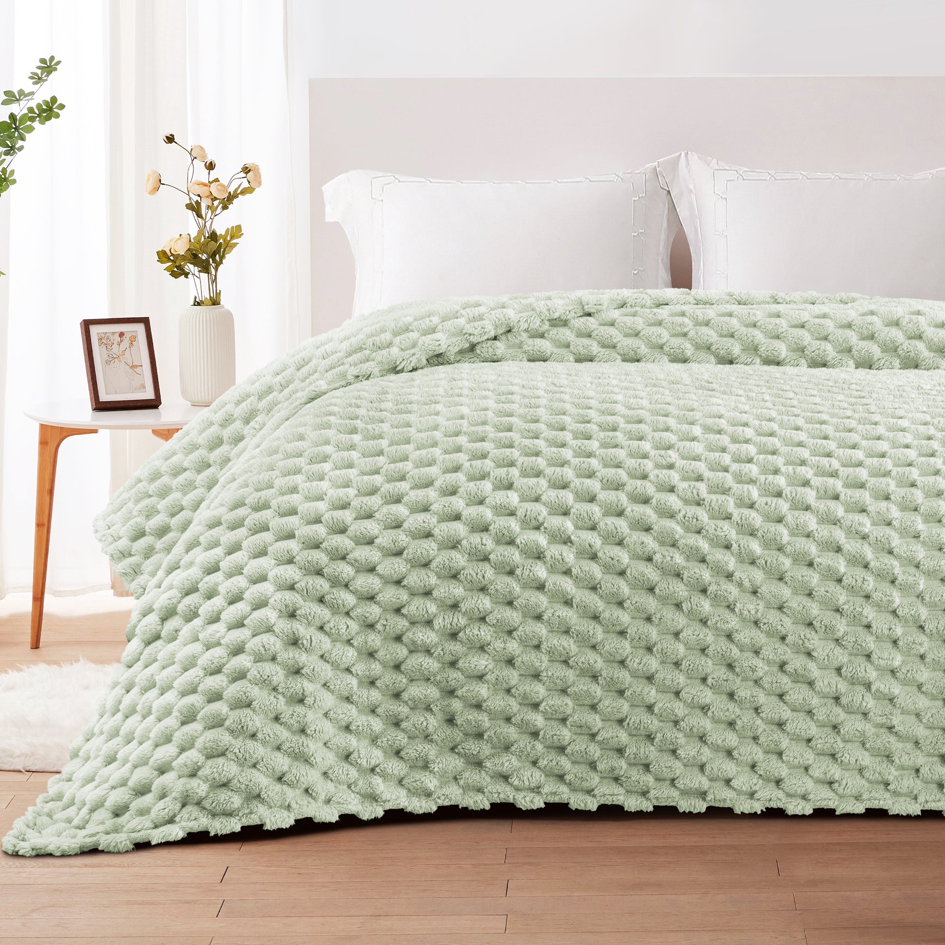 Whale Flotilla Queen Size Blanket for Bed with Expanded 3D-Jacquard Pattern, Fuzzy Soft Cozy Exquisite Blankets or All Season, Warm and Fluffy, 90x90 Inch,Sage Green