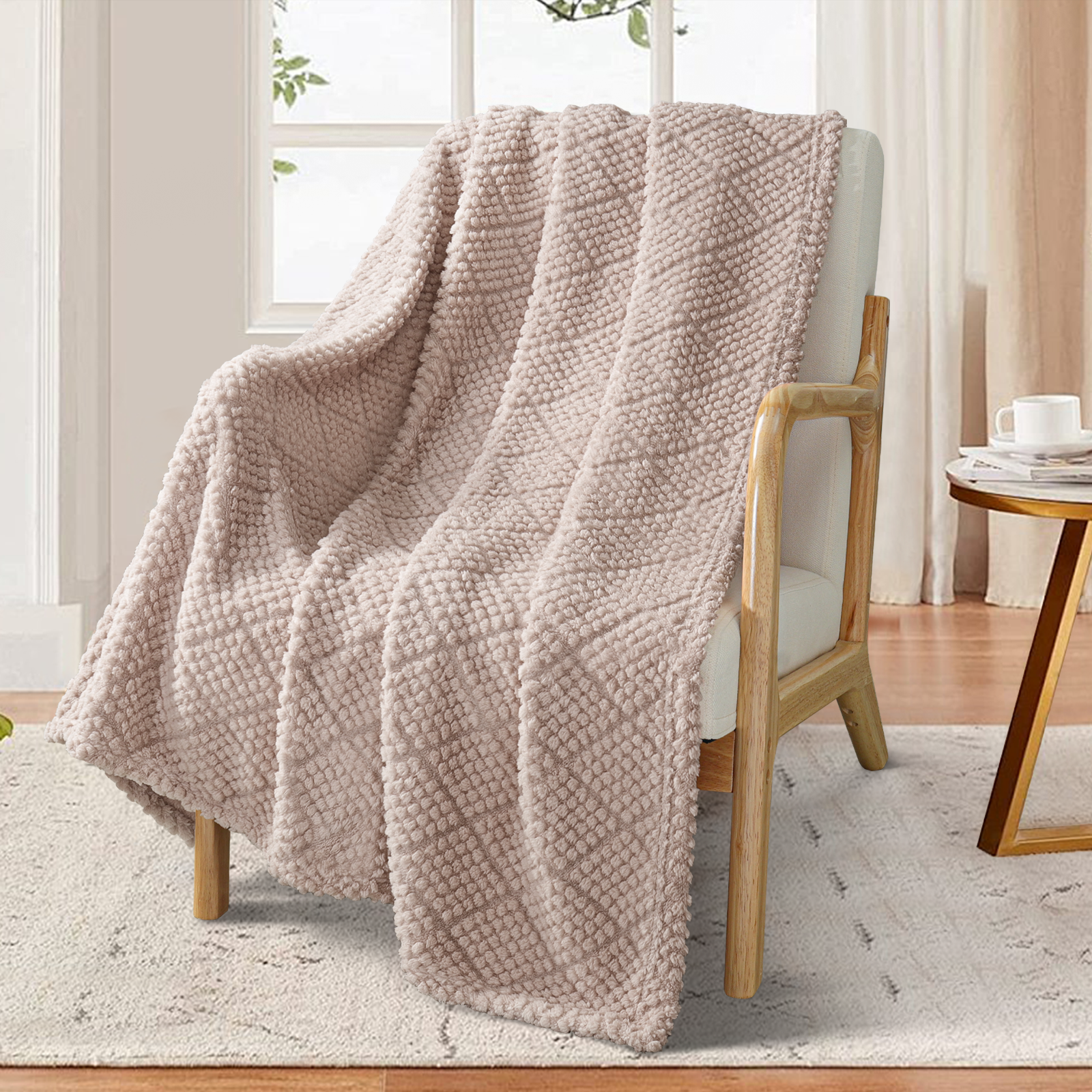Whale Flotilla Fuzzy Fleece Throw Blanket for Couch, Bed, Soft Fluffy Jacquard Waffle Blankets for All Season, Lightweight and Warm, 50x60 Inch, Camel
