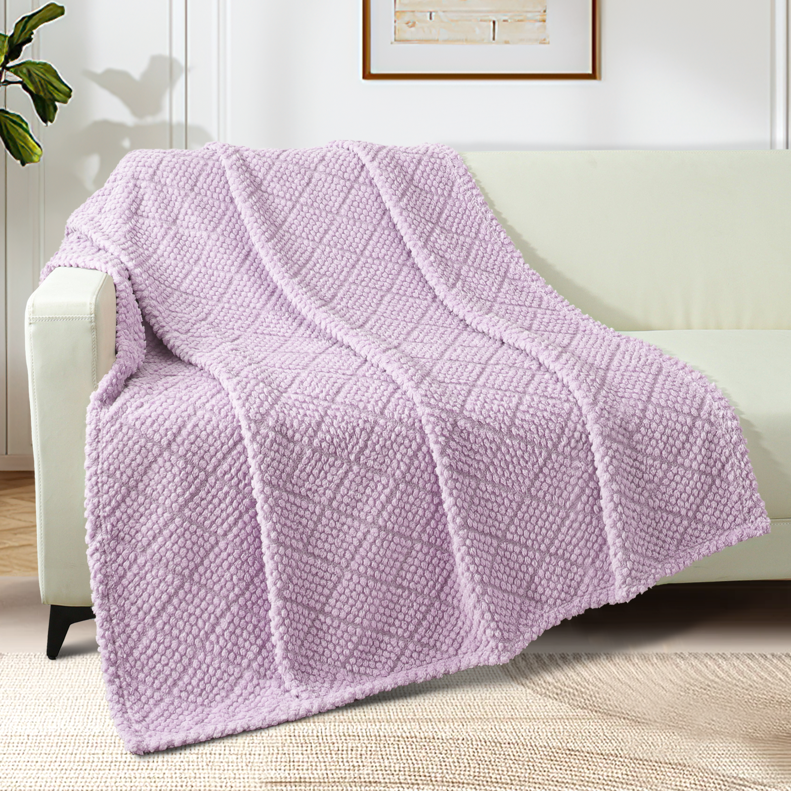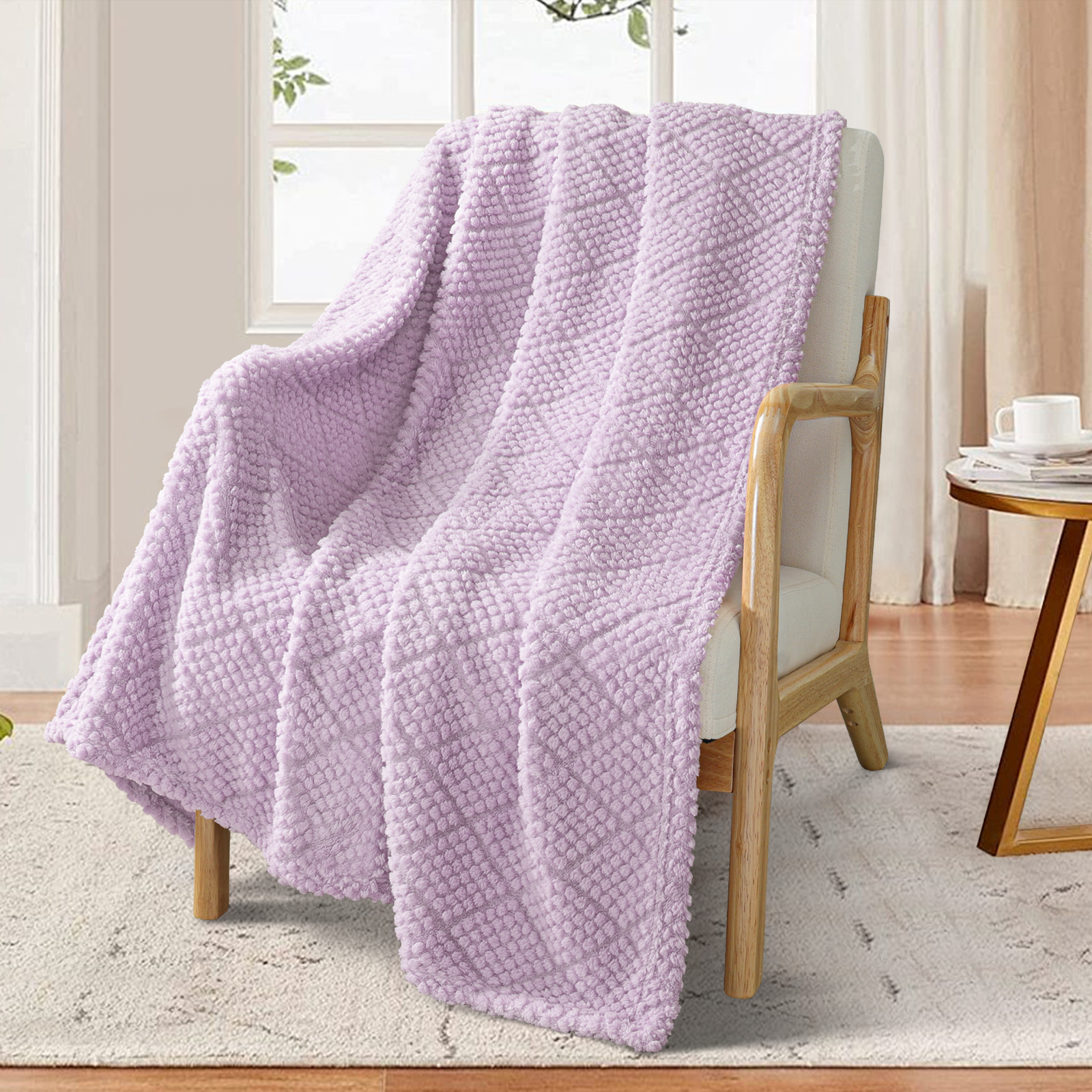 Whale Flotilla Fuzzy Fleece Throw Blanket for Couch, Bed, Soft Fluffy Jacquard Waffle Blankets for All Season, Lightweight and Warm, 50x60 Inch, Lilac