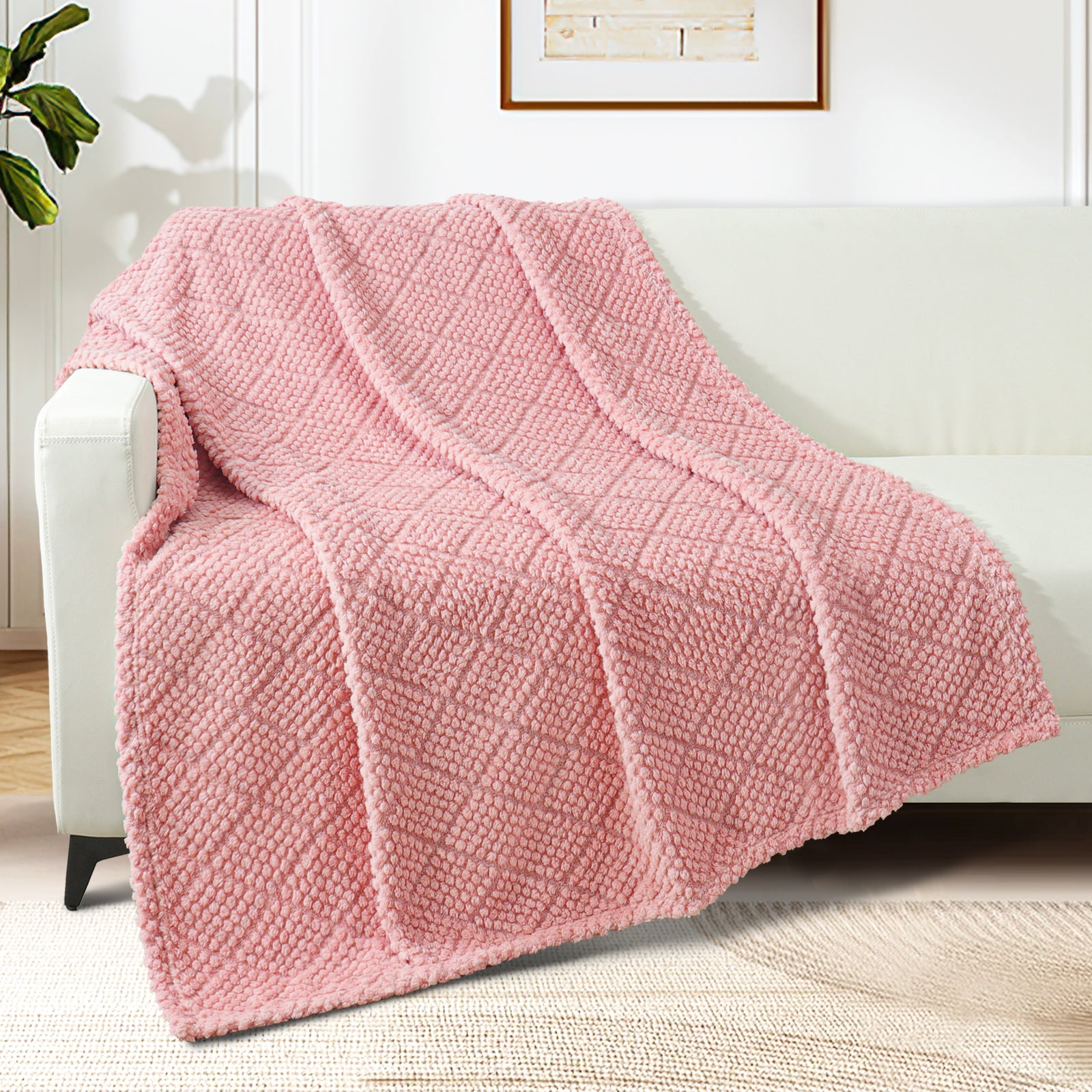 Whale Flotilla Fuzzy Fleece Throw Blanket for Couch, Bed, Soft Fluffy Jacquard Waffle Blankets for All Season, Lightweight and Warm, 50x60 Inch, Pink