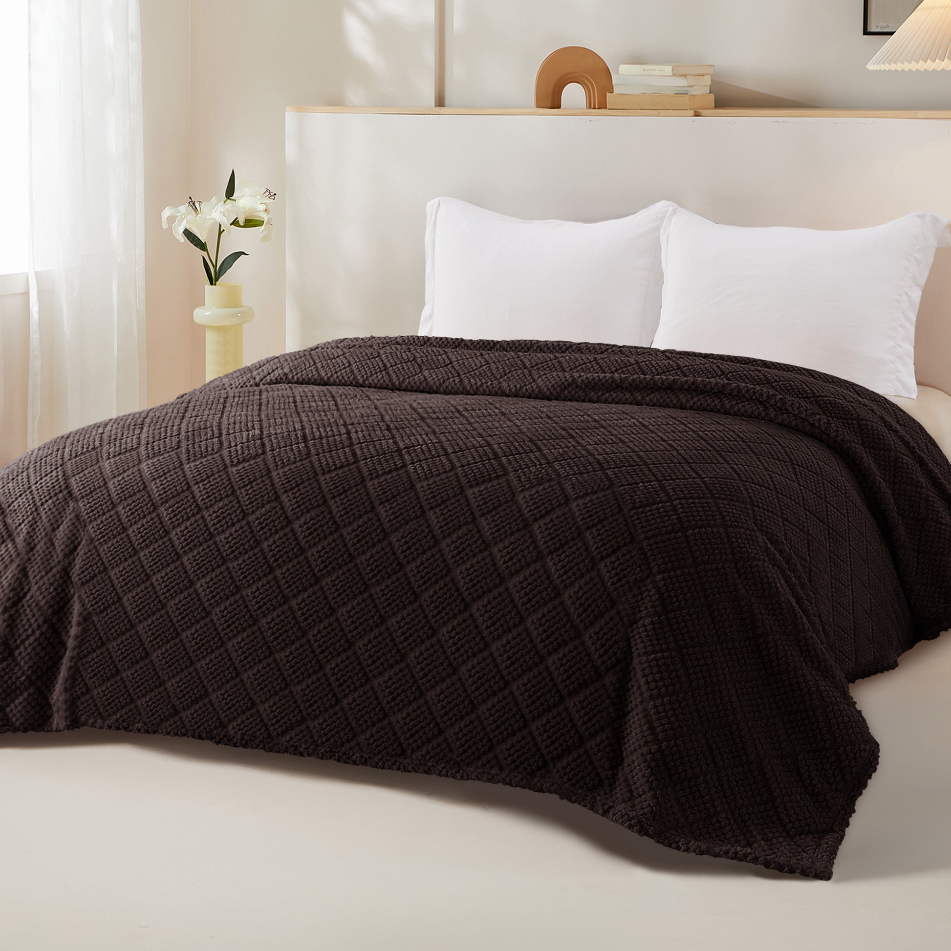 Whale Flotilla Fuzzy Fleece Twin Size Blanket for Bed, Soft Fluffy Jacquard Waffle Blankets for All Season, Lightweight and Warm, 60x80 Inch, Coffee