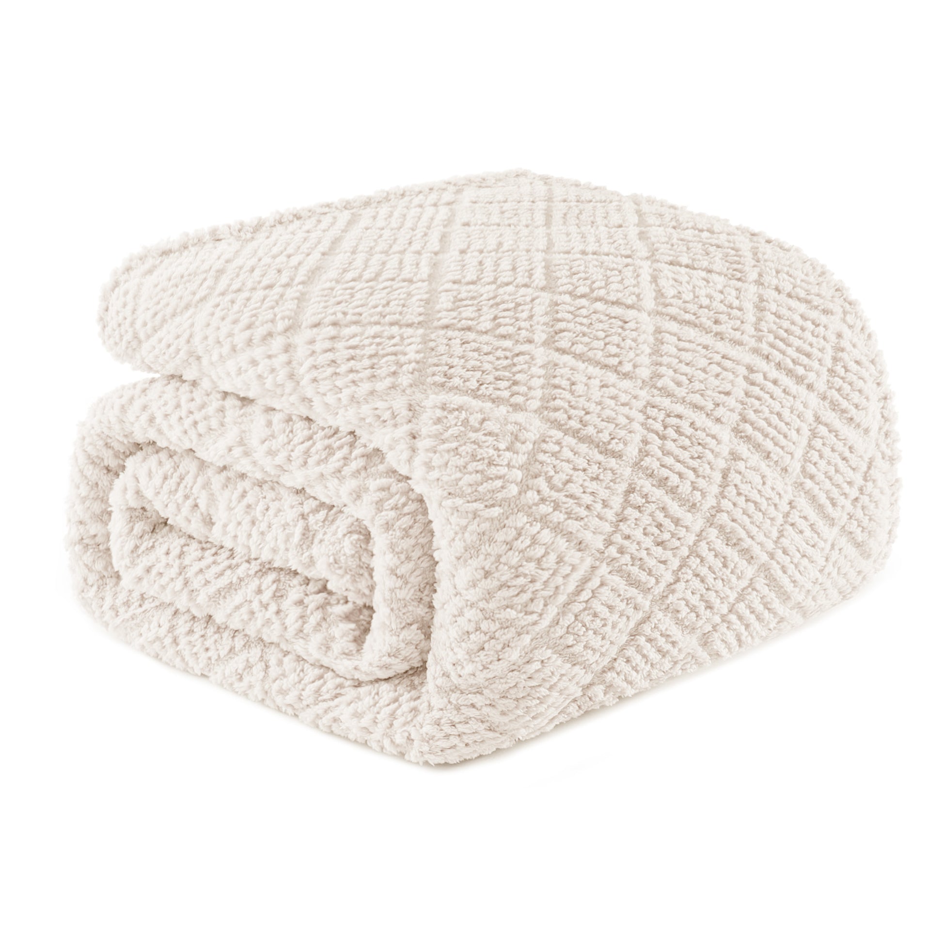 Whale Flotilla Fuzzy Fleece Twin Size Blanket for Bed, Soft Fluffy Jacquard Waffle Blankets for All Season, Lightweight and Warm, 60x80 Inch, Ivory