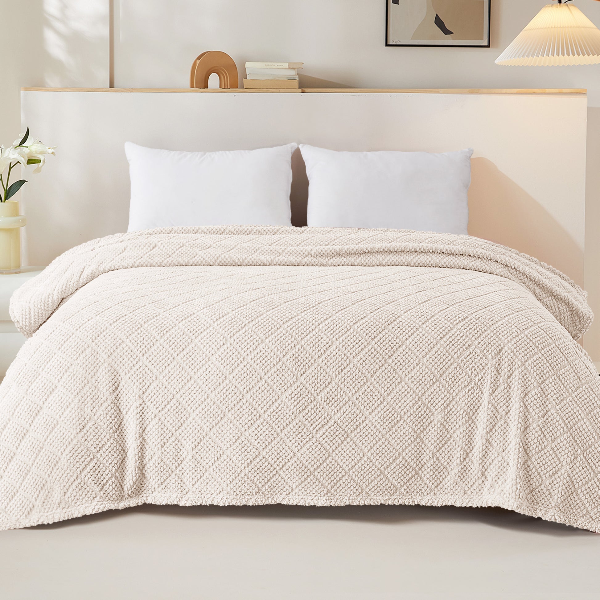 Whale Flotilla Fuzzy Fleece King Size Blanket for Bed, Soft Fluffy Jacquard Waffle Blankets for All Season, Lightweight and Warm, 90x104 Inch, Ivory