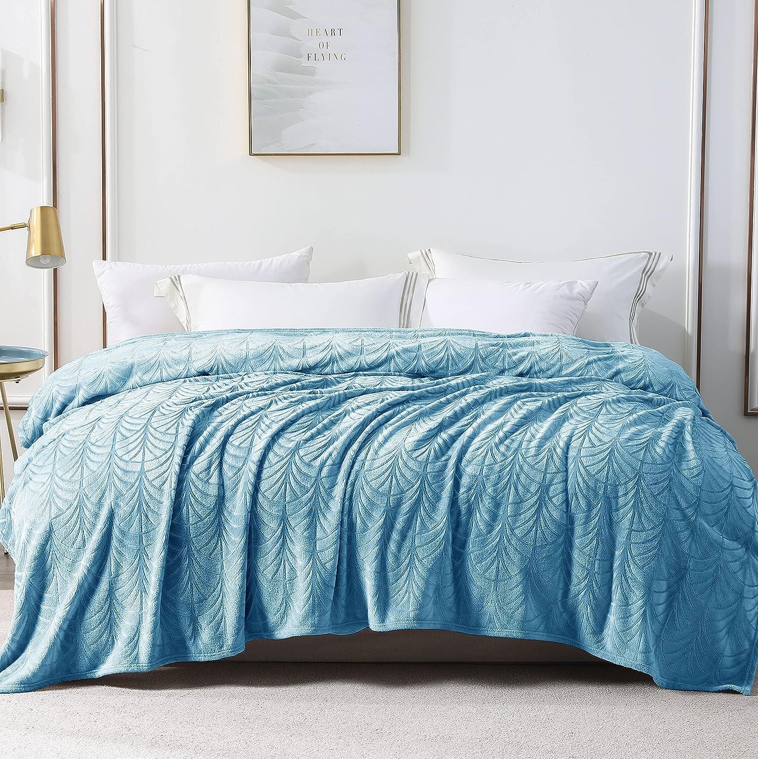 Whale Flotilla Flannel Fleece Twin Size Blanket for Bed, Soft Fluffy Velvet Bedspread Coverlet with Decorative Vintage Pattern for All Season, Warm and Lightweight, 60x80 Inch, Stone Blue