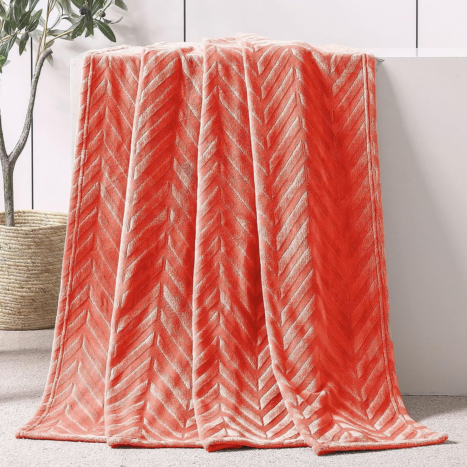 Whale Flotilla Fleece Throw Blanket for Couch, Soft Fluffy Sofa Bed Blanket with Chevron Pattern for All Season, Warm and Lightweight, 50x60 Inch, Coral