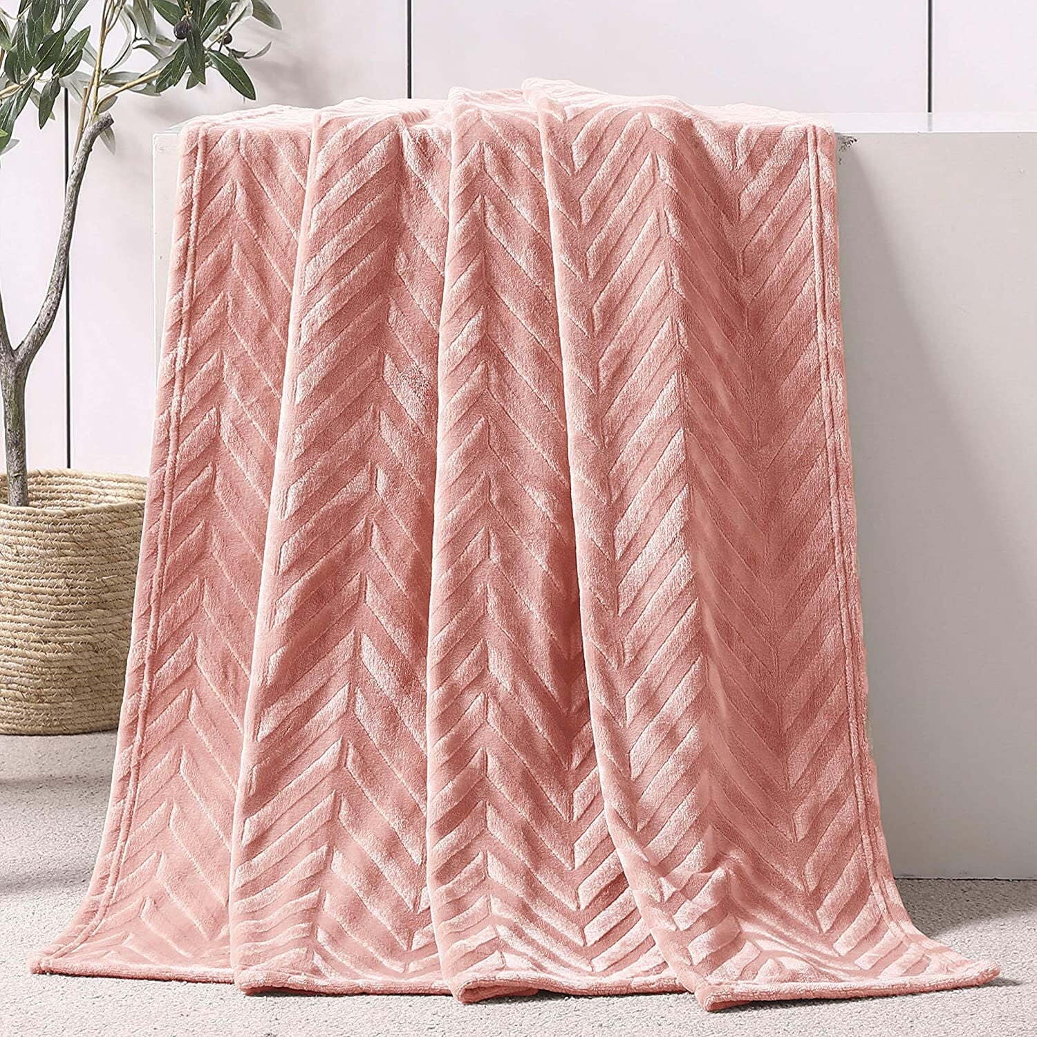 Whale Flotilla Soft Flannel Fleece Lightweight Throw Blanket(50"x60"), Brushed Chevron Design Fluffy Plush Cozy Blanket for All Seasons, Pink