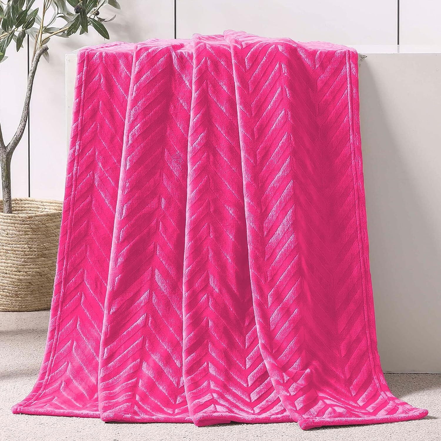 Whale Flotilla Fleece Throw Blanket for Couch, Soft Fluffy Sofa Bed Blanket with Chevron Pattern for All Season, Warm and Lightweight, 50x60 Inch, Hot Pink