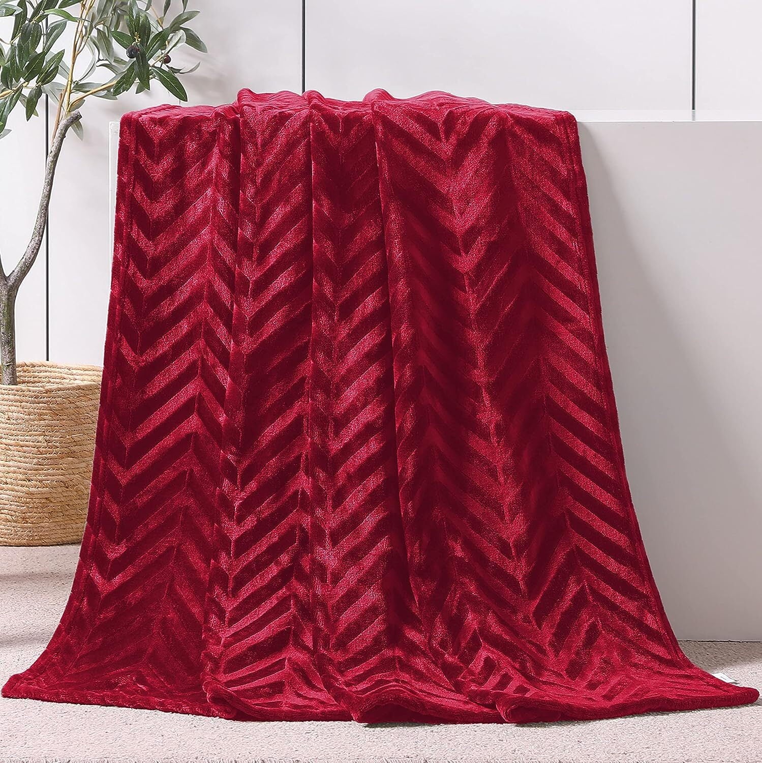 Whale Flotilla Fleece Throw Blanket for Couch, Soft Fluffy Sofa Bed Blanket with Chevron Pattern for All Season, Warm and Lightweight, 50x60 Inch, Red