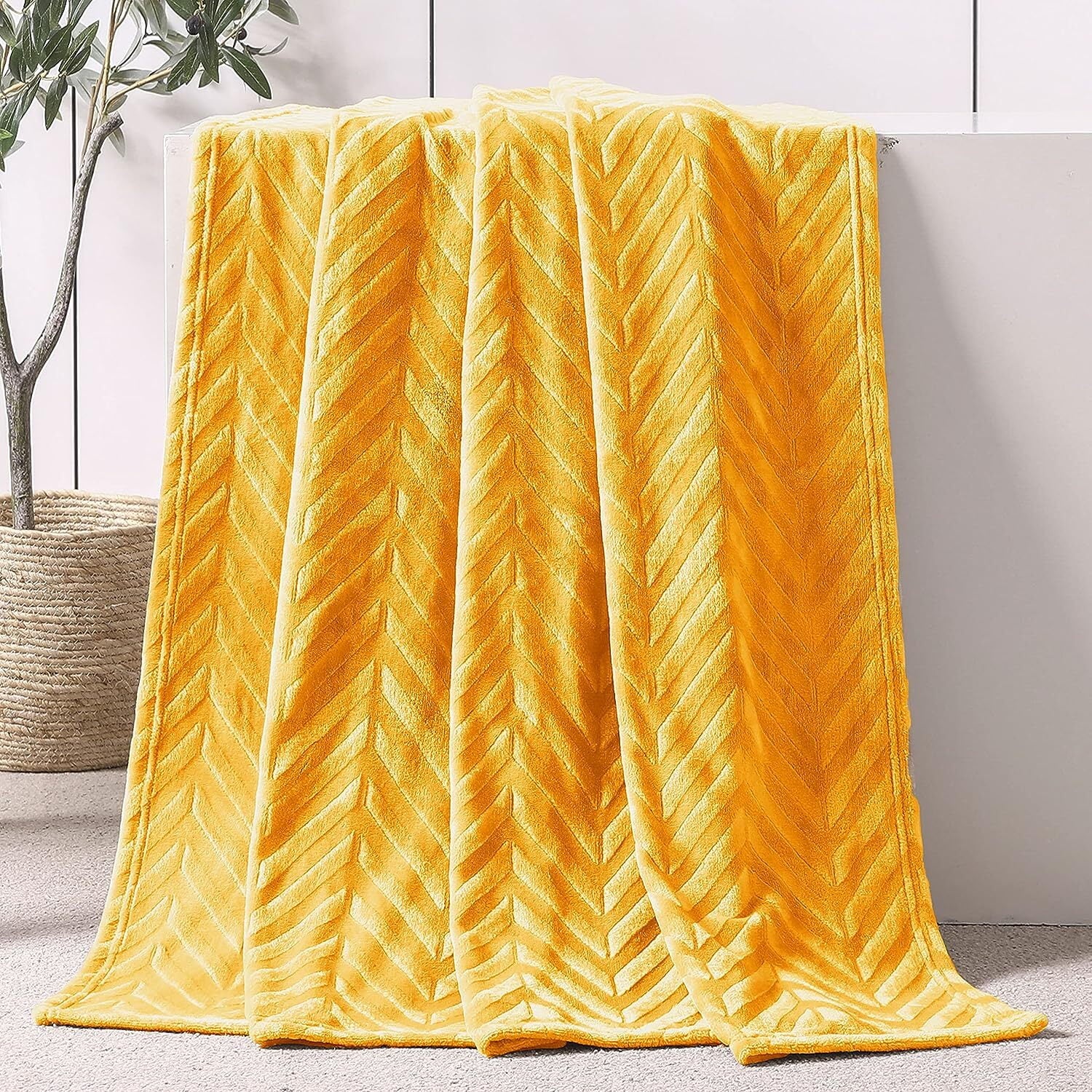 Whale Flotilla Fleece Throw Blanket for Couch, Soft Fluffy Sofa Bed Blanket with Chevron Pattern for All Season, Warm and Lightweight, 50x60 Inch, Lemon Yellow