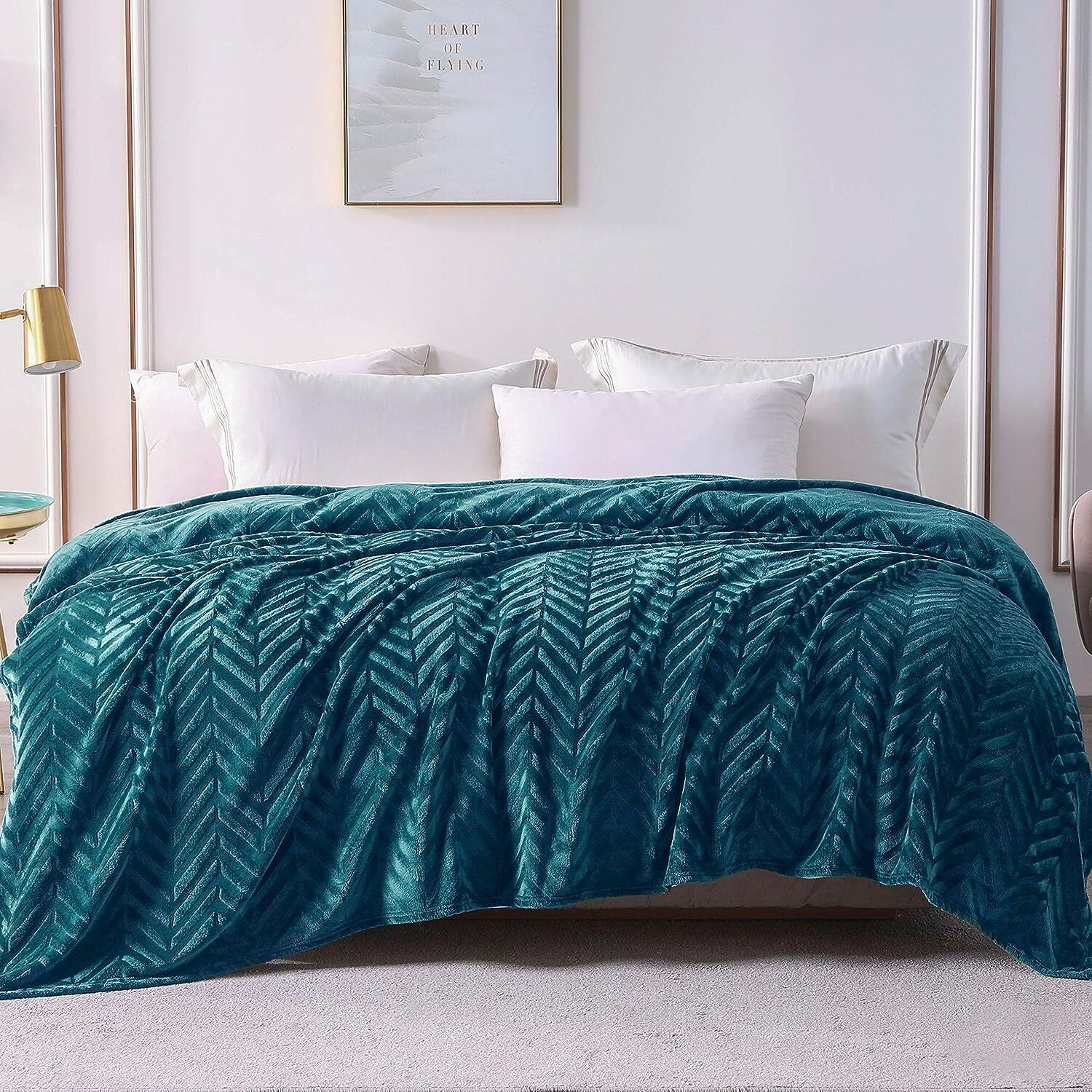 Whale Flotilla Flannel Fleece Double Size Blanket for Bed, 150x200 CM, Soft Fluffy Velvet Bed Blanket with Decorative Chevron Pattern for All Season, Warm and Lightweight, Teal