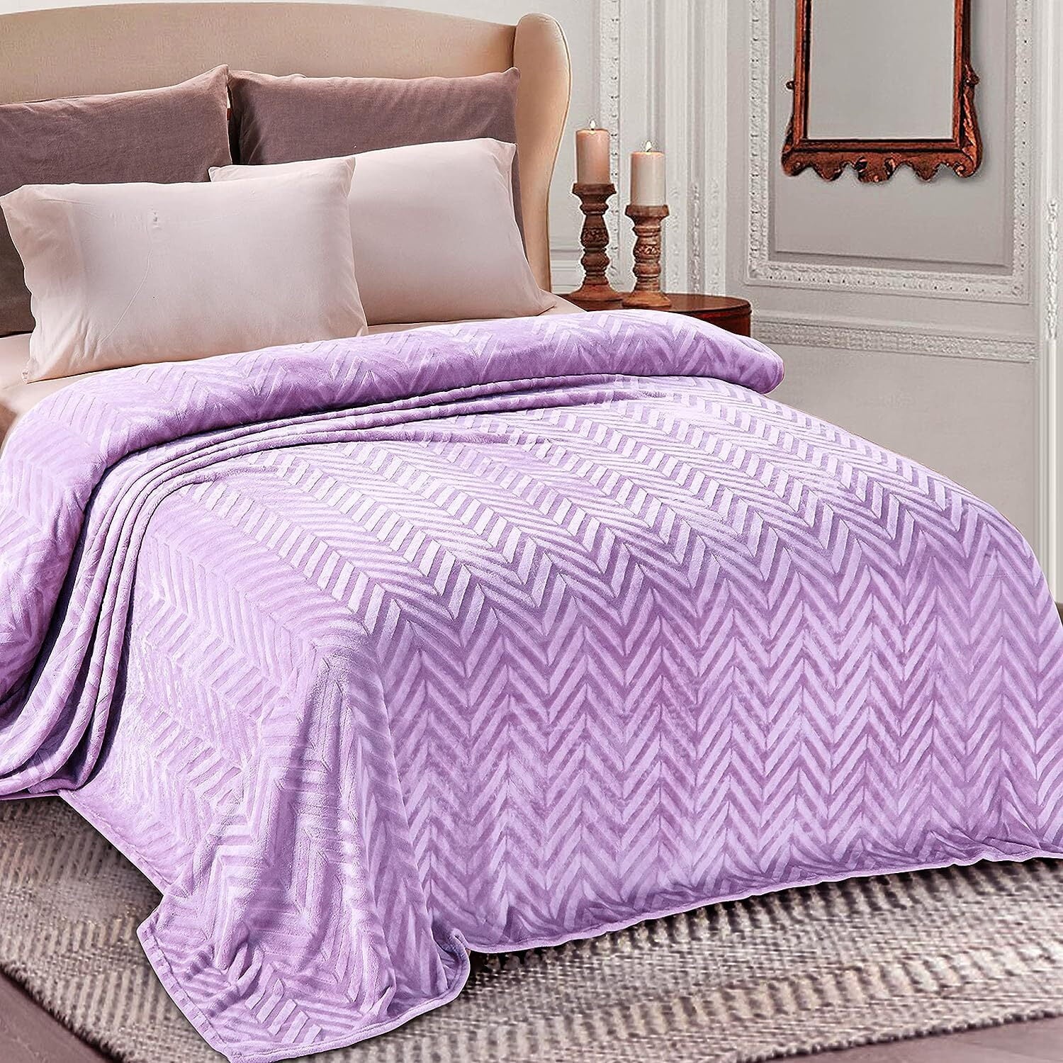 Whale Flotilla Flannel Fleece Queen Size Bed Blanket, Soft Velvet Lightweight Bedspread Plush Fluffy Coverlet Chevron Design Decorative Blanket for All Season, 90x90 Inch, Lilac