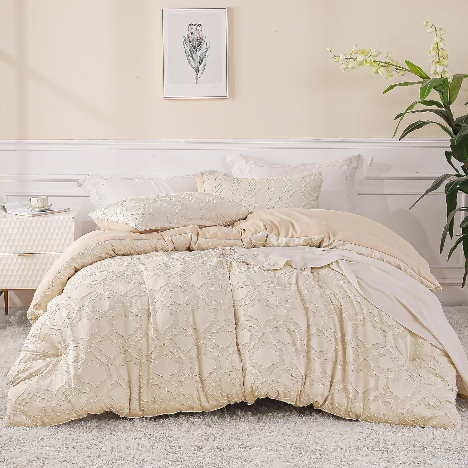 Delicate Tufted Design: Our bedding comforter sets feature elegant tufted design, which stand out from other plain comforters or duvets. Jacquard patterns are clearly displayed on the surface of comforter, to create a shabby chic style for your bedroom. It will be a impressively stylish and functional addition to your bedroom.