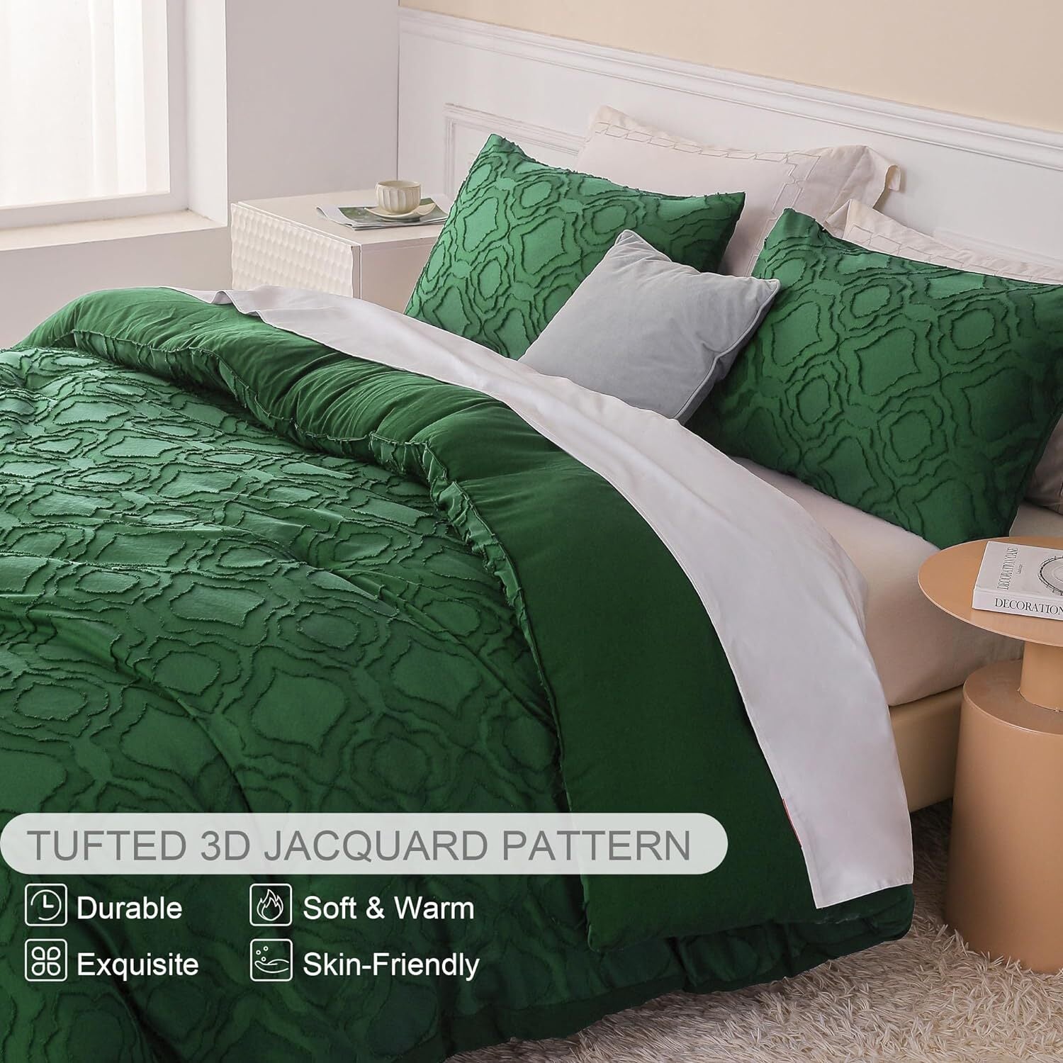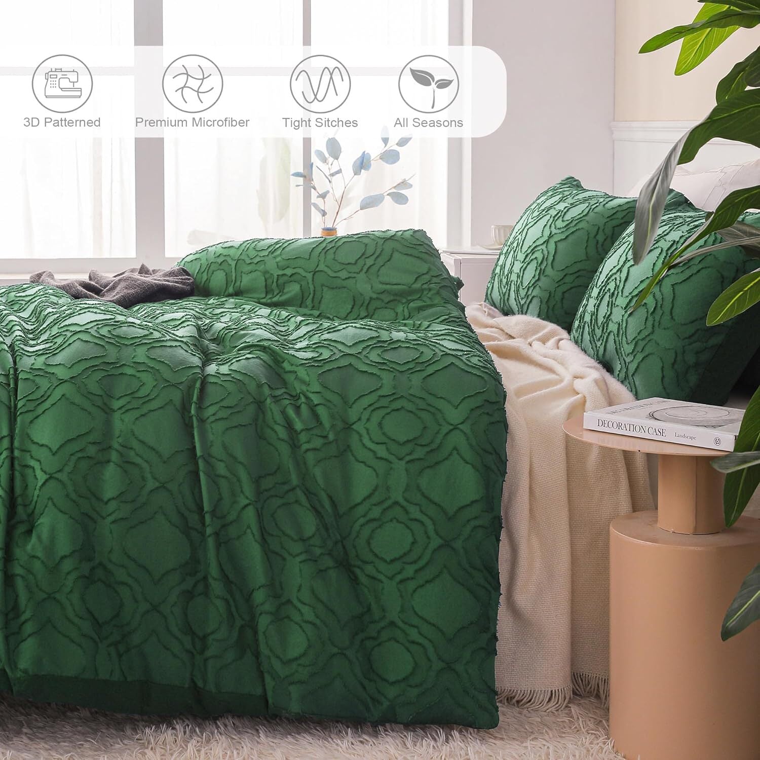 Whale Flotilla 3-Piece Tufted King Size Comforter Set, Soft Fluffy Shabby Chic Comforter for All Seasons, Farmhouse Boho Duvet Bedding Sets with 2 Pillow Shams, 90"x104", Deep Green