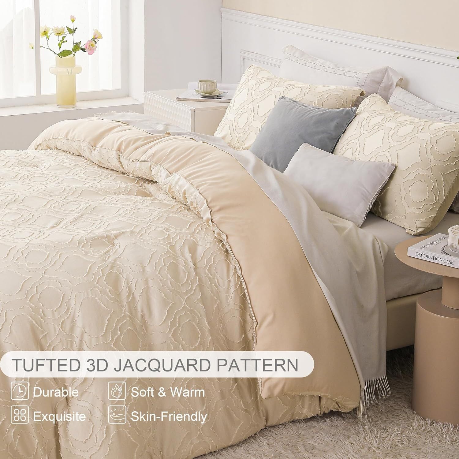 Delicate Tufted Design: Our bedding comforter sets feature elegant tufted design, which stand out from other plain comforters or duvets. Jacquard patterns are clearly displayed on the surface of comforter, to create a shabby chic style for your bedroom. It will be a impressively stylish and functional addition to your bedroom.