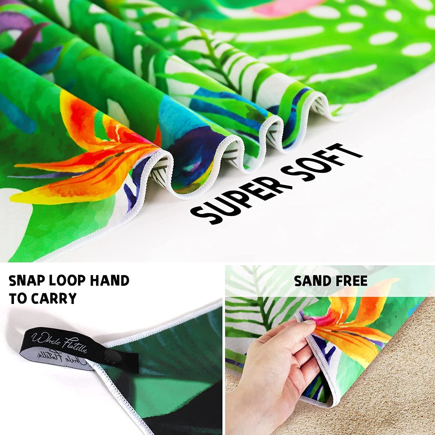 Whale Flotilla Floral Quick Dry Beach Towel, Large Sand Free Pool Microfiber Beach Towels for Kids and Adults, Lightweight and Absorbent,30"x60", Tropical Leaves