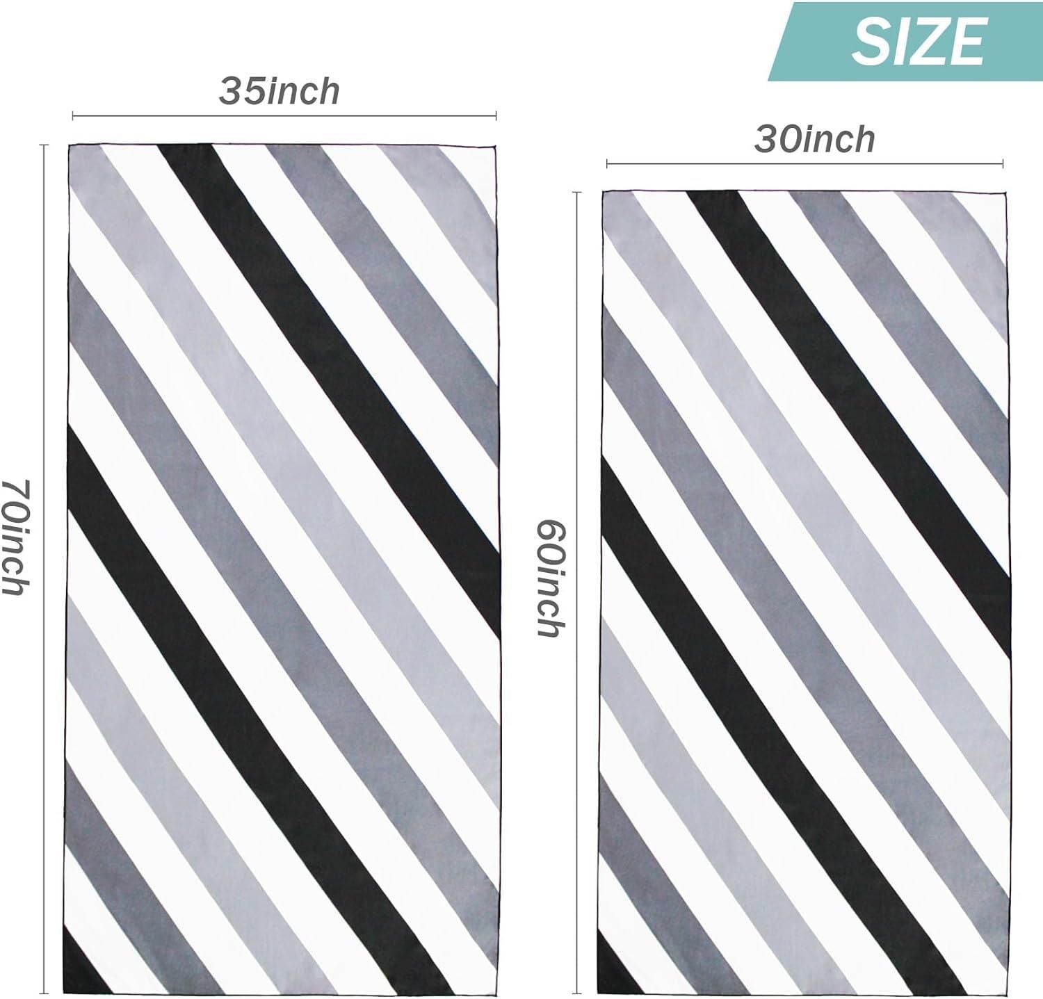 SIZE: This large-size (30?\X60?\) beach towel is very compact and lightweight with an adorable bag, easy to pack and carry. It could fold down to maximize space in your luggage or closet, lightening your burden in travel.SIZE: This large-size (30?\X60?\) beach towel is very compact and lightweight with an adorable bag, easy to pack and carry. It could fold down to maximize space in your luggage or closet, lightening your burden in travel.DESIGN: With classic cabana stripes, bright colors and delicate embroidered logo of Whale Flotilla, this gorgeous beach towel is a perfect companion for sunbathing, making you an eye-catching and fashionable guy on the coast.ABSORBENT&SANDFREE: This beach towel soaks up water easily, and provides moisture-wicking control to keep your skin cool and dry. It is so smooth with a tight weave that makes sand and dust difficult to adhere to. You can easily shake the sand off even when it gets wet.CARE INSTRUCTION: Machine Wash Cold, Tumble Dry on Low, please wash it separately for the first time, and wash similar color of towel together, No Bleaching, No ironing