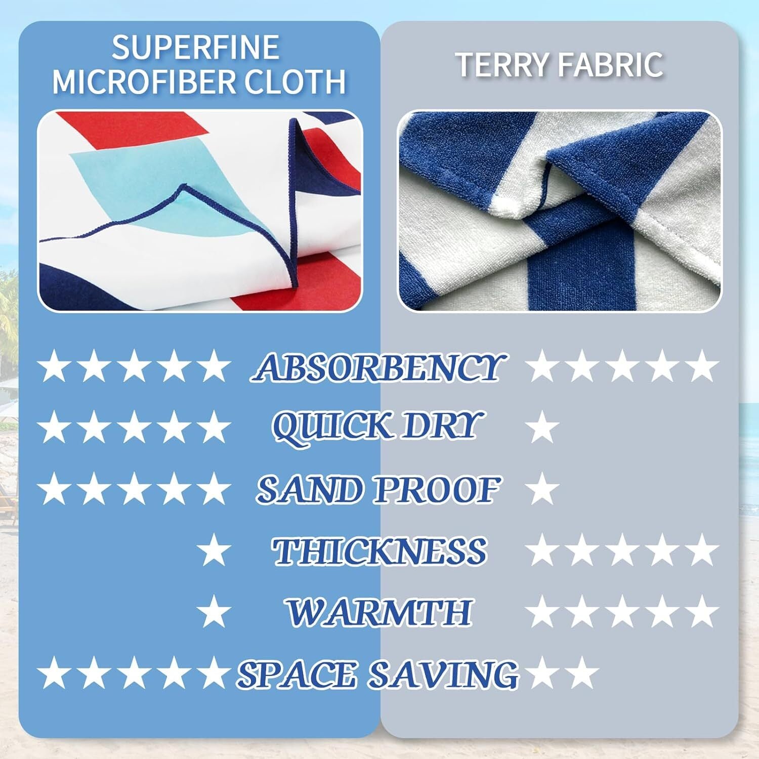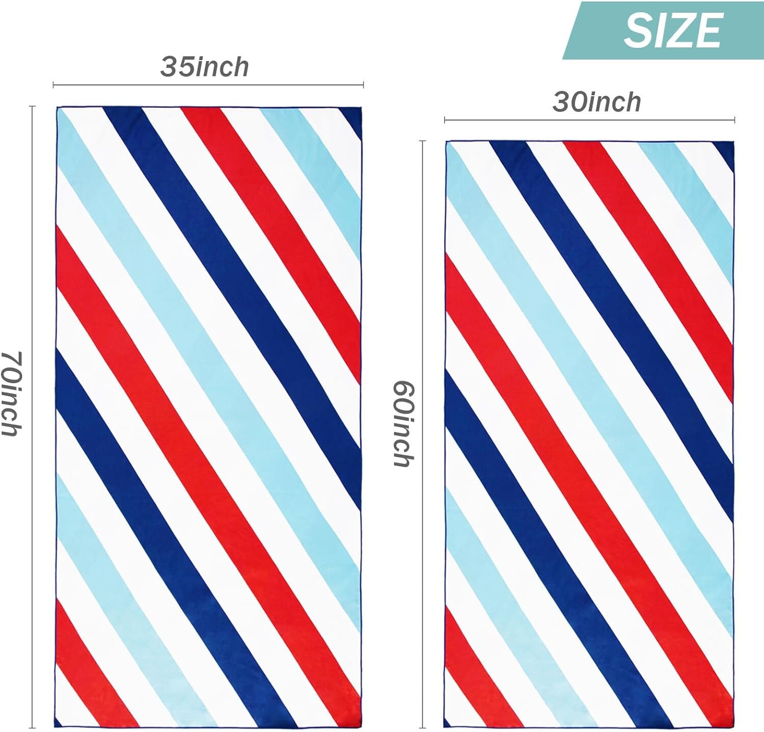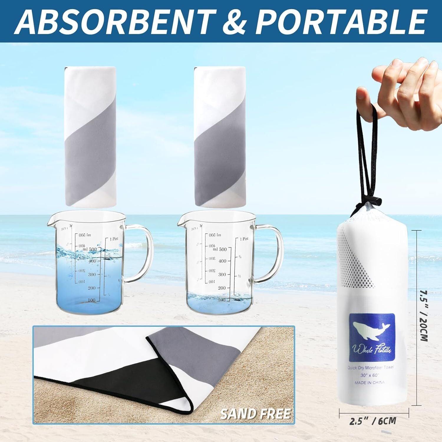 QUALITY: Made of 85% polyester and 15% polyamide, this beach towel is MORE LIGHTWEIGHT and THINNER than common towels. Compared to all cotton and all polyester material beach towels, our beach towel has stronger water absorption ability.SIZE: This large-size (30?\X60?\) beach towel is very compact and lightweight with an adorable bag, easy to pack and carry. It could fold down to maximize space in your luggage or closet, lightening your burden in travel.DESIGN: With classic cabana stripes, bright colors and delicate embroidered logo of Whale Flotilla, this gorgeous beach towel is a perfect companion for sunbathing, making you an eye-catching and fashionable guy on the coast.ABSORBENT&SANDFREE: This beach towel soaks up water easily, and provides moisture-wicking control to keep your skin cool and dry. It is so smooth with a tight weave that makes sand and dust difficult to adhere to. You can easily shake the sand off even when it gets wet.CARE INSTRUCTION: Machine Wash Cold, Tumble Dry on Low, please wash it separately for the first time, and wash similar color of towel together, No Bleaching, No ironing