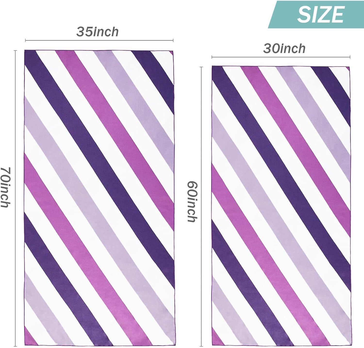 SIZE: This large-size (30?\X60?\) beach towel is very compact and lightweight with an adorable bag, easy to pack and carry. It could fold down to maximize space in your luggage or closet, lightening your burden in travel.SIZE: This large-size (30?\X60?\) beach towel is very compact and lightweight with an adorable bag, easy to pack and carry. It could fold down to maximize space in your luggage or closet, lightening your burden in travel.DESIGN: With classic cabana stripes, bright colors and delicate embroidered logo of Whale Flotilla, this gorgeous beach towel is a perfect companion for sunbathing, making you an eye-catching and fashionable guy on the coast.ABSORBENT&SANDFREE: This beach towel soaks up water easily, and provides moisture-wicking control to keep your skin cool and dry. It is so smooth with a tight weave that makes sand and dust difficult to adhere to. You can easily shake the sand off even when it gets wet.CARE INSTRUCTION: Machine Wash Cold, Tumble Dry on Low, please wash it separately for the first time, and wash similar color of towel together, No Bleaching, No ironing