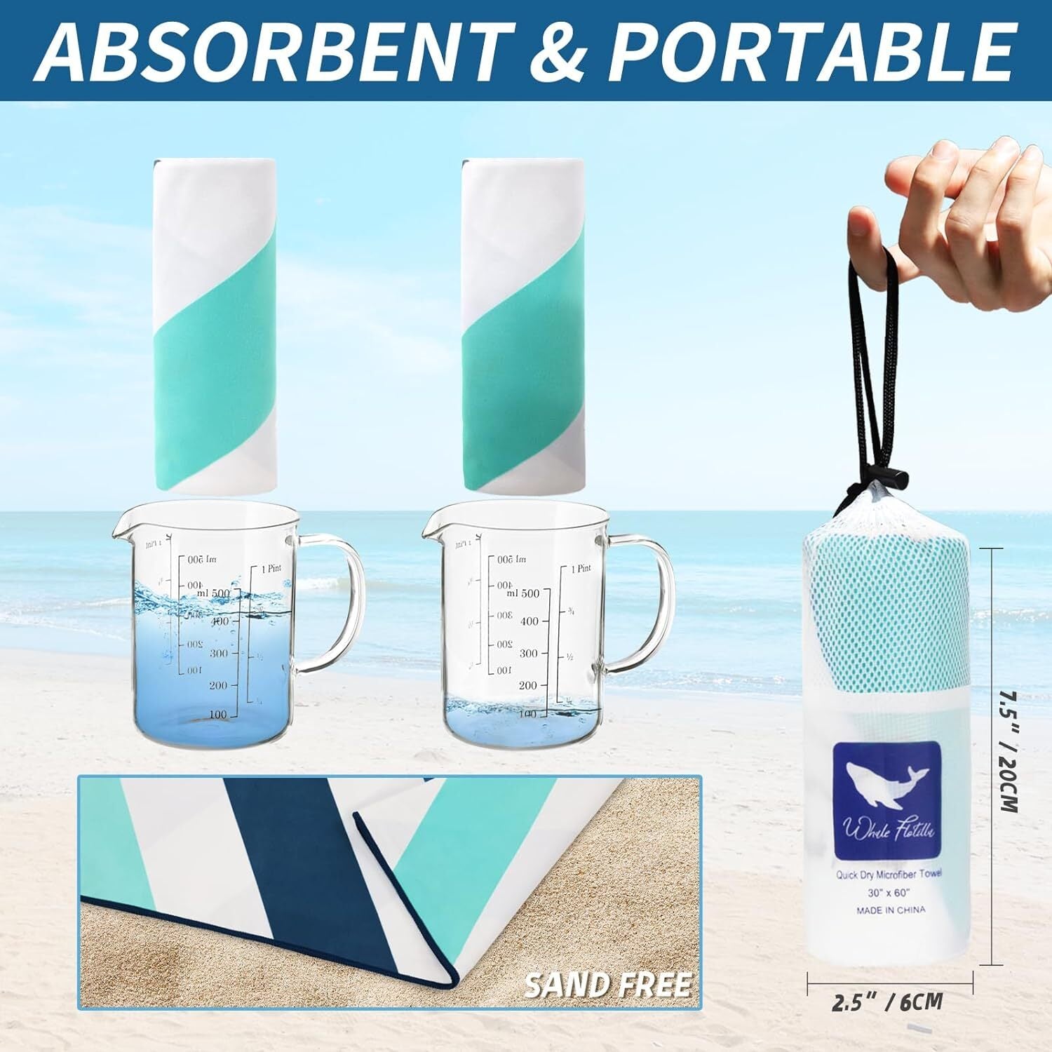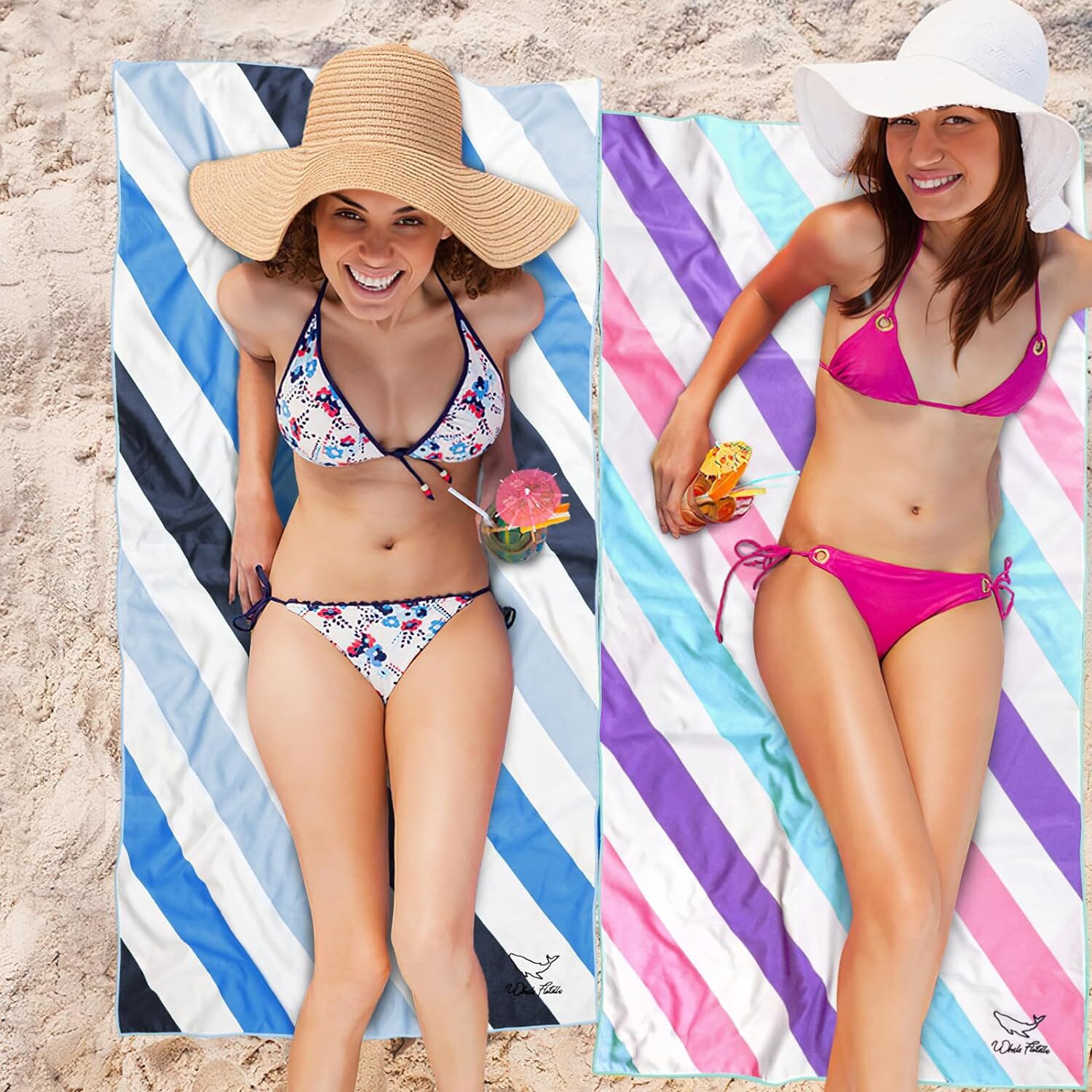 Made of 85% polyester and 15% polyamide, these durable towels are not only lighter and thinner than normal cotton towels, but also more absorbent. In addition, these beautiful beach towels from Whale Flotilla will leave the sand on the beach where it belongs- no more sand in your bag or in your car!DESIGN: With classic cabana stripes, bright colors and delicate embroidered logo of Whale Flotilla, this gorgeous beach towel is a perfect companion for sunbathing, making you an eye-catching and fashionable guy on the coast.ABSORBENT&SANDFREE: This beach towel soaks up water easily, and provides moisture-wicking control to keep your skin cool and dry. It is so smooth with a tight weave that makes sand and dust difficult to adhere to. You can easily shake the sand off even when it gets wet.CARE INSTRUCTION: Machine Wash Cold, Tumble Dry on Low, please wash it separately for the first time, and wash similar color of towel together, No Bleaching, No ironing