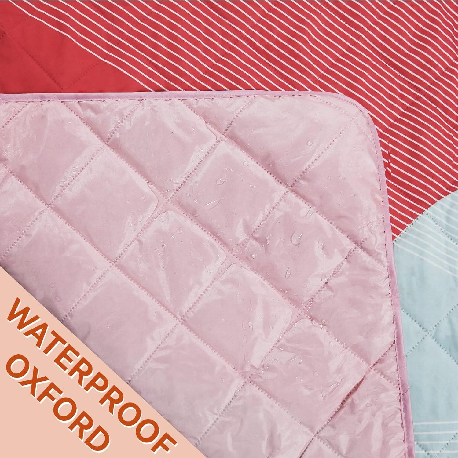Material: Whale Flotilla sandproof picnic blanket adopts 3-layer design, with soft brushed fabric on the top, microfiber padding in the middle, and 210D waterproof oxford on the bottom. Sophisticated quilting technology makes layers tightly stitched, not easy to wear down and fall off.
