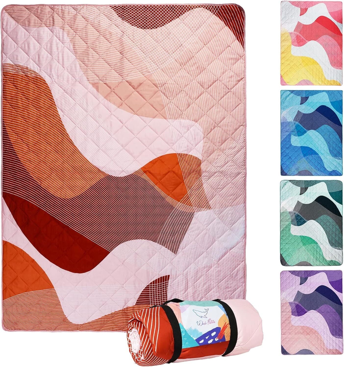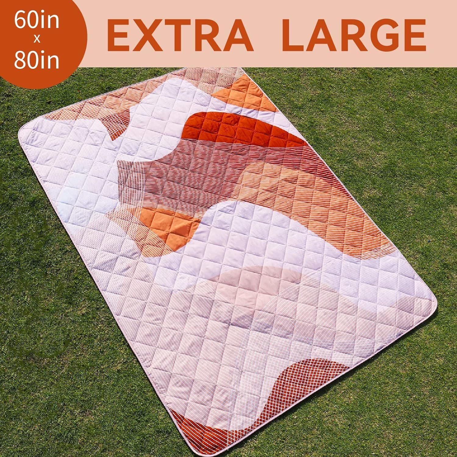 Extra Large: This picnic mat size is about 60 X 80 inch, large enough for whole families to sit around, chatting, playing with lovely kids or pet, or just enjoying beautiful scenery. The outdoor picnic blanket could easily fold up to a compact and small size, portable to carry out with adjustable shoulder straps and buckles.Chic Design: This picnic mat features regular wavy lines and multiple bright color match. The unique and fashion design will impress your friends and families in camping, a perfect ornament for your travel. Various colors and styles are available to choose.Multiple uses: This multifunctional picnic blanket is suitable for various occasions and all seasons: a picnic mat for camping, barbecue, sunbathing and other outdoor activities; a playing mat for family fun with your lovey pets and kids; a yoga mat for yoga and meditation and a nap mat for short lunch break.Machine Washable: The outdoor picnic blanket is easy to clean. After use, you can easily shake and wipe dirt, grass, sand off with a washcloth or tissue. Cold machine wash and tumble dry on low are better recommended.