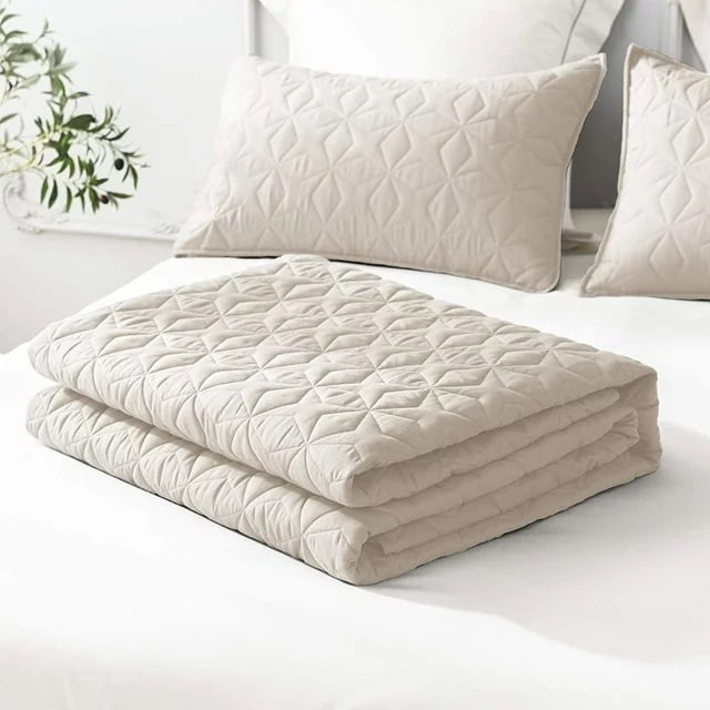 QUALITY FABRIC£o100% Microfiber quality brushed microfiber and soft polyester filling make the quilt soft and comfortable. The lightweight fabric is suitable for all seasons, perfect for summer hot nights. In winter, you can add a comforter underneath to have warmer and sweeter dreams. PROPER-SIZED£oThe king quilt set includes one quilt (96"x104"), two king pillow shams (20"x36"). Compared to other twin quilt, the quilt, long enough to cover the edges of the bed, fits the bed perfectly. PERFECT HOME DECORATION£oDelicate geometric quilted stitching in solid color. The color and quilting design are exactly as pictured, easy to match your bedroom decor and adds a nice pop of color. A prefect choice for your home decoration. PERFECT FOR FAMILIES WITH CHILDREN AND PETS: The quilt is soft enough to provide extremely comfortable care for children. It is durable enough to stand up against the wear and continuous washing. It washes great and doesn't hold pet hair. EASY-CLEAN: Machine wash in cold water on gentle cycle, only non-chlorine bleach when needed, tumble dry on low heat. No shrinkage, No pilling, No colour fading and No unravelling after washing.Share
