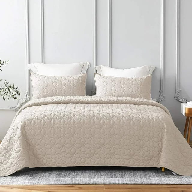 Whale Flotilla Quilt Set King Size, Soft Microfiber Lightweight Bedspread Coverlet Bed Cover (Star Pattern) for All Seasons, Bone, 3 Pieces (Includes 1 Quilt, 2 Shams)