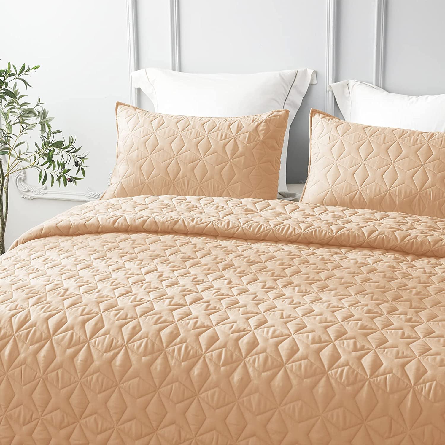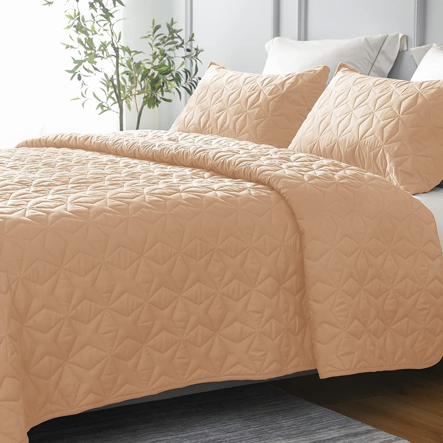 Whale Flotilla Quilt Set King Size, Soft Microfiber Lightweight Bedspread Coverlet Bed Cover (Star Pattern) for All Seasons, Taupe, 3 Pieces (Includes 1 Quilt, 2 Shams)