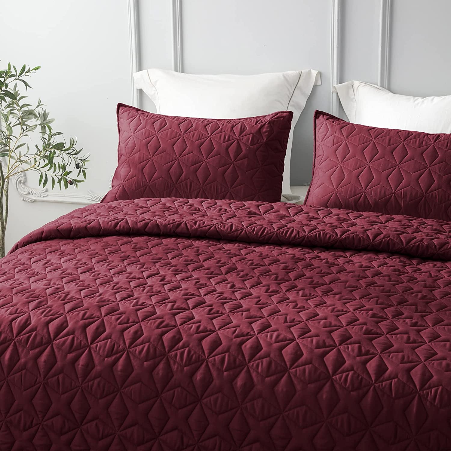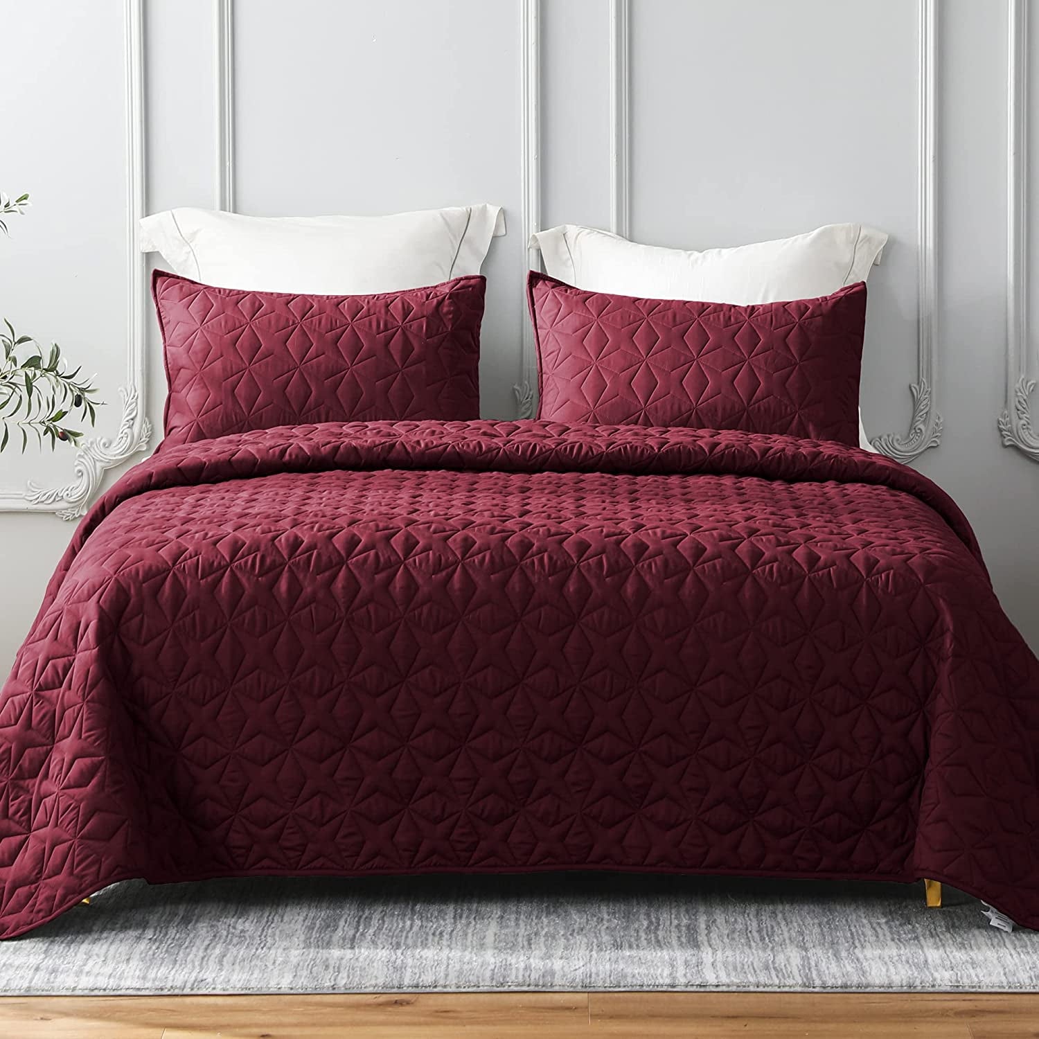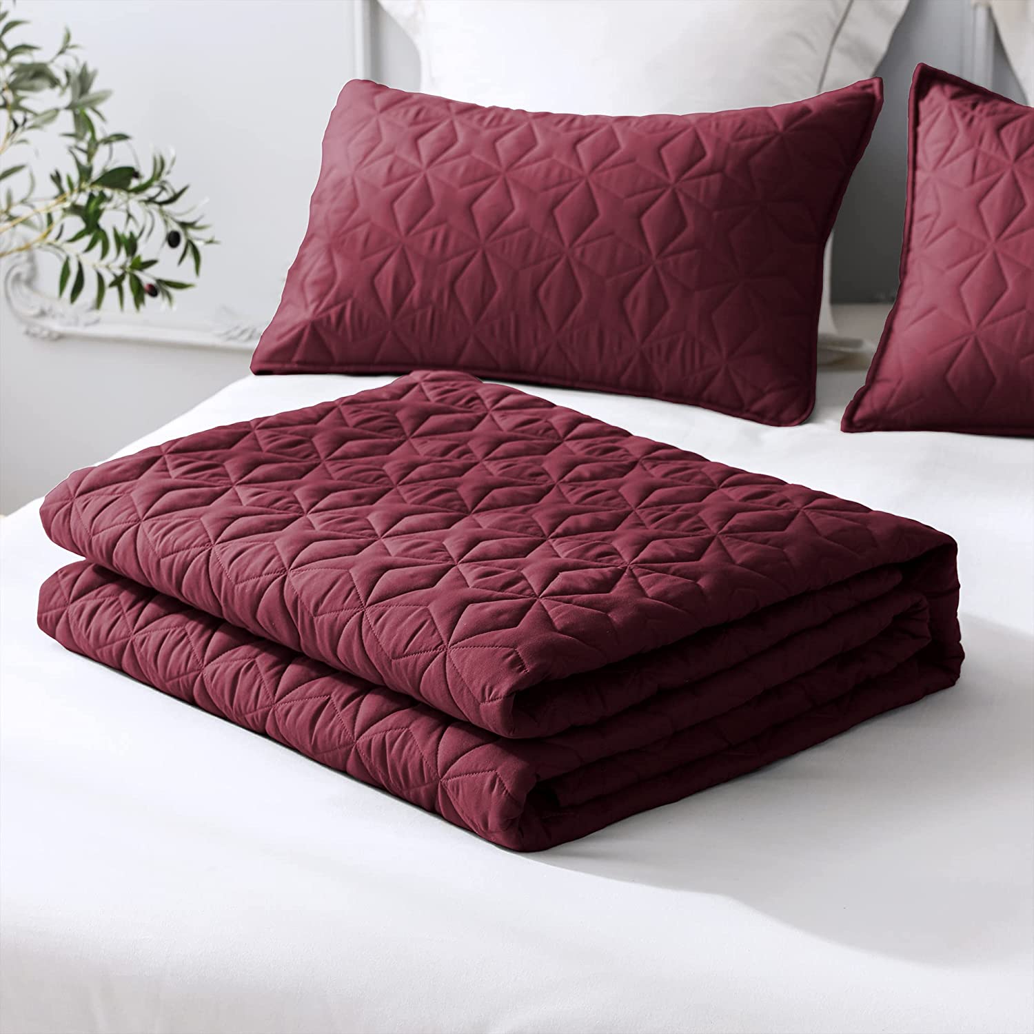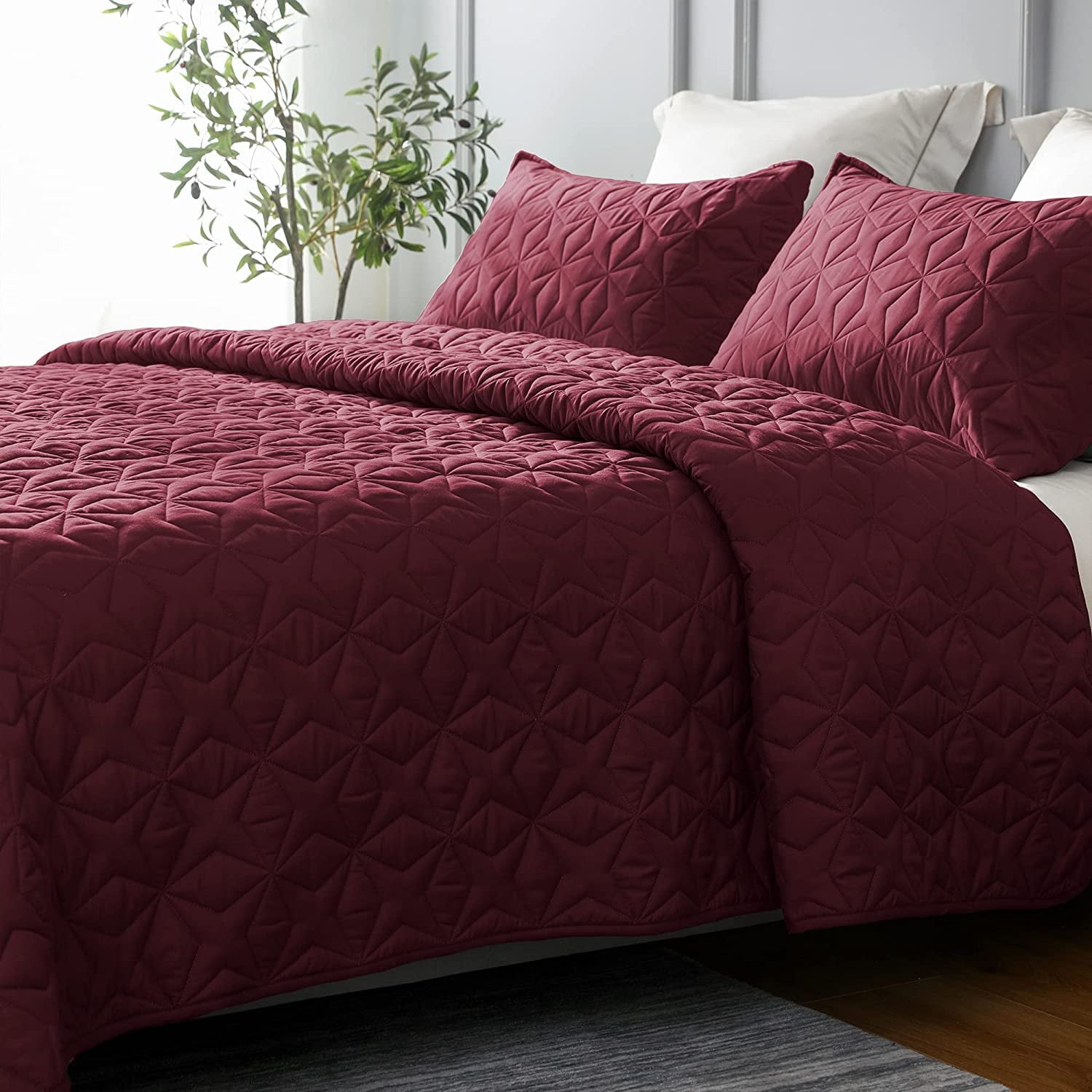 QUALITY FABRIC£o100% Microfiber quality brushed microfiber and soft polyester filling make the quilt soft and comfortable. The lightweight fabric is suitable for all seasons, perfect for summer hot nights. In winter, you can add a comforter underneath to have warmer and sweeter dreams. PROPER-SIZED£oThe king quilt set includes one quilt (96"x104"), two king pillow shams (20"x36"). Compared to other twin quilt, the quilt, long enough to cover the edges of the bed, fits the bed perfectly. PERFECT HOME DECORATION£oDelicate geometric quilted stitching in solid color. The color and quilting design are exactly as pictured, easy to match your bedroom decor and adds a nice pop of color. A prefect choice for your home decoration. PERFECT FOR FAMILIES WITH CHILDREN AND PETS: The quilt is soft enough to provide extremely comfortable care for children. It is durable enough to stand up against the wear and continuous washing. It washes great and doesn't hold pet hair. EASY-CLEAN: Machine wash in cold water on gentle cycle, only non-chlorine bleach when needed, tumble dry on low heat. No shrinkage, No pilling, No colour fading and No unravelling after washing.Share