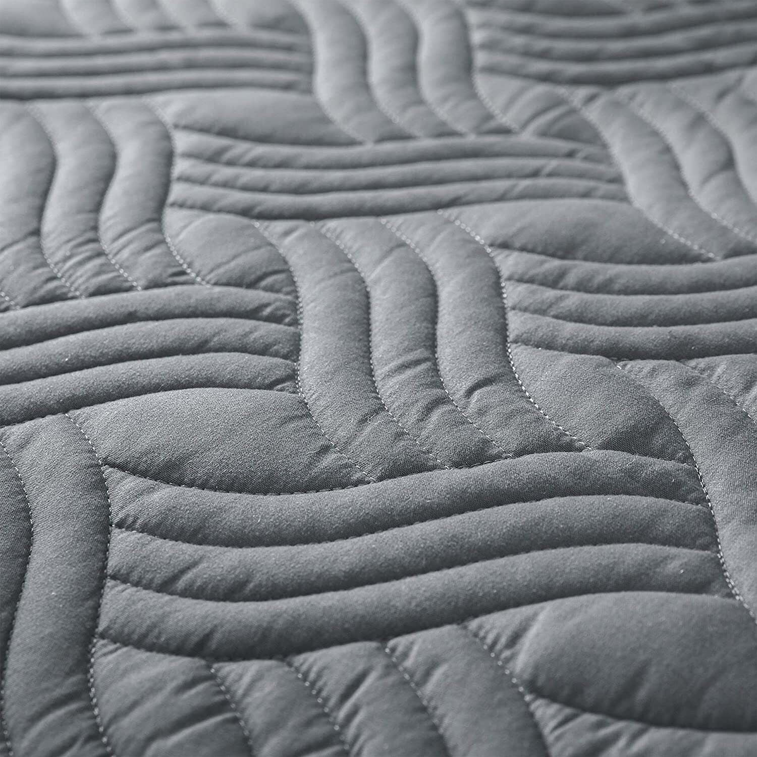 Whale Flotilla Quilt Set King Size, Soft Microfiber Lightweight Bedspread Coverlet Bed Cover (Wave Pattern) for All Seasons, Dark Grey, 3 Pieces (Includes 1 Quilt, 2 Shams)