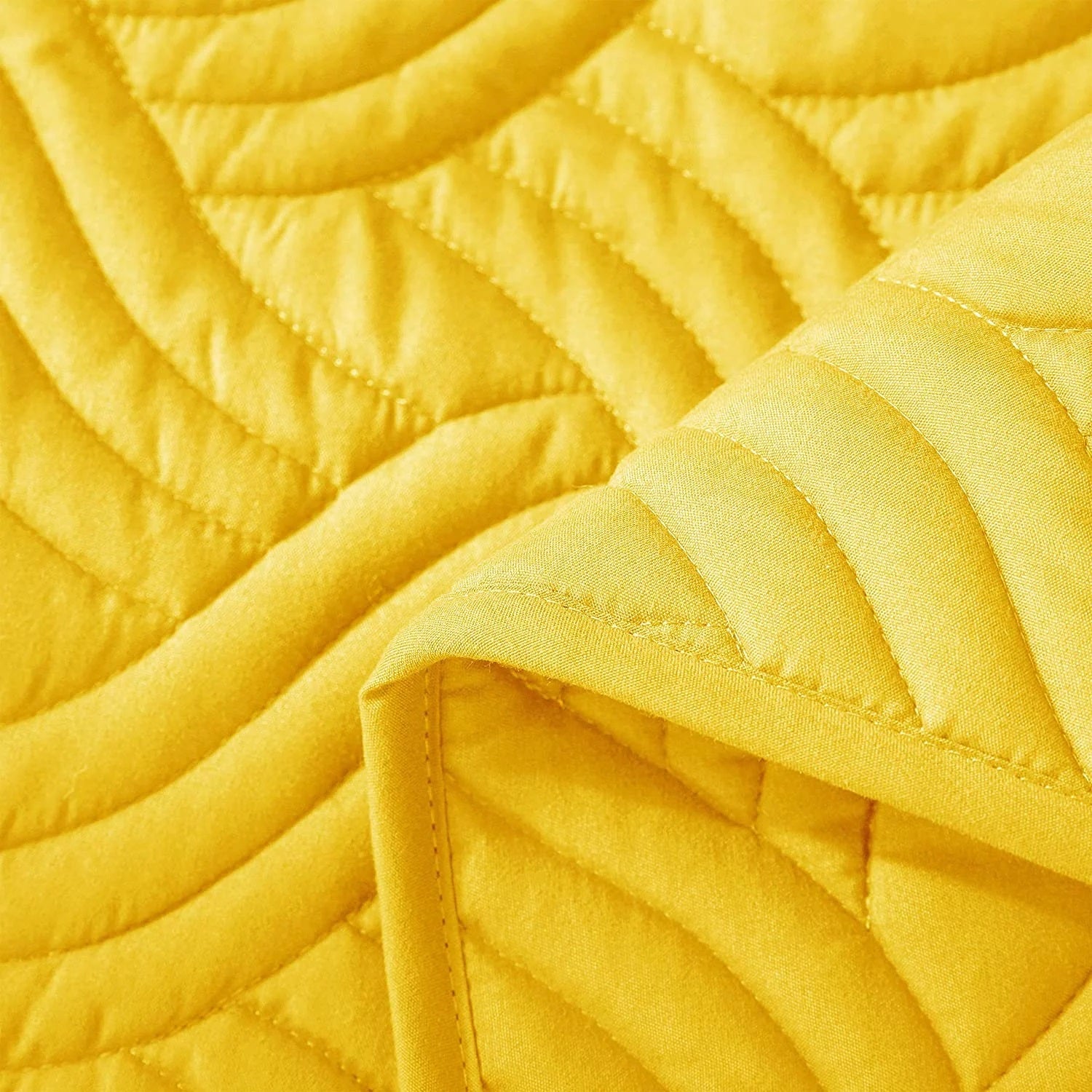 Whale Flotilla Quilt Set King Size, Soft Microfiber Lightweight Bedspread Coverlet Bed Cover (Wave Pattern) for All Seasons, Yellow, 3 Pieces (Includes 1 Quilt, 2 Shams)
