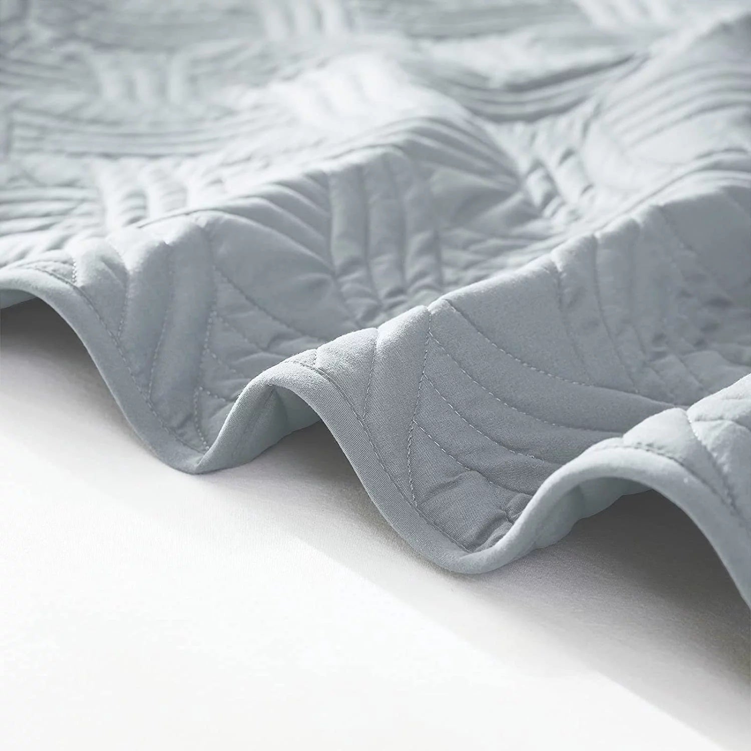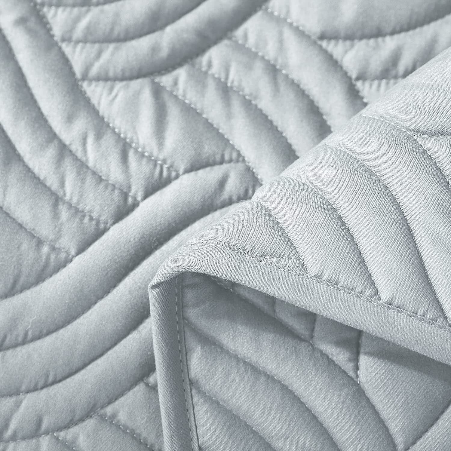 Whale Flotilla Quilt Set Queen Size, Soft Microfiber Lightweight Bedspread Coverlet Bed Cover (Wave Pattern) for All Seasons, Light Grey, 3 Pieces (Includes 1 Quilt, 2 Shams)