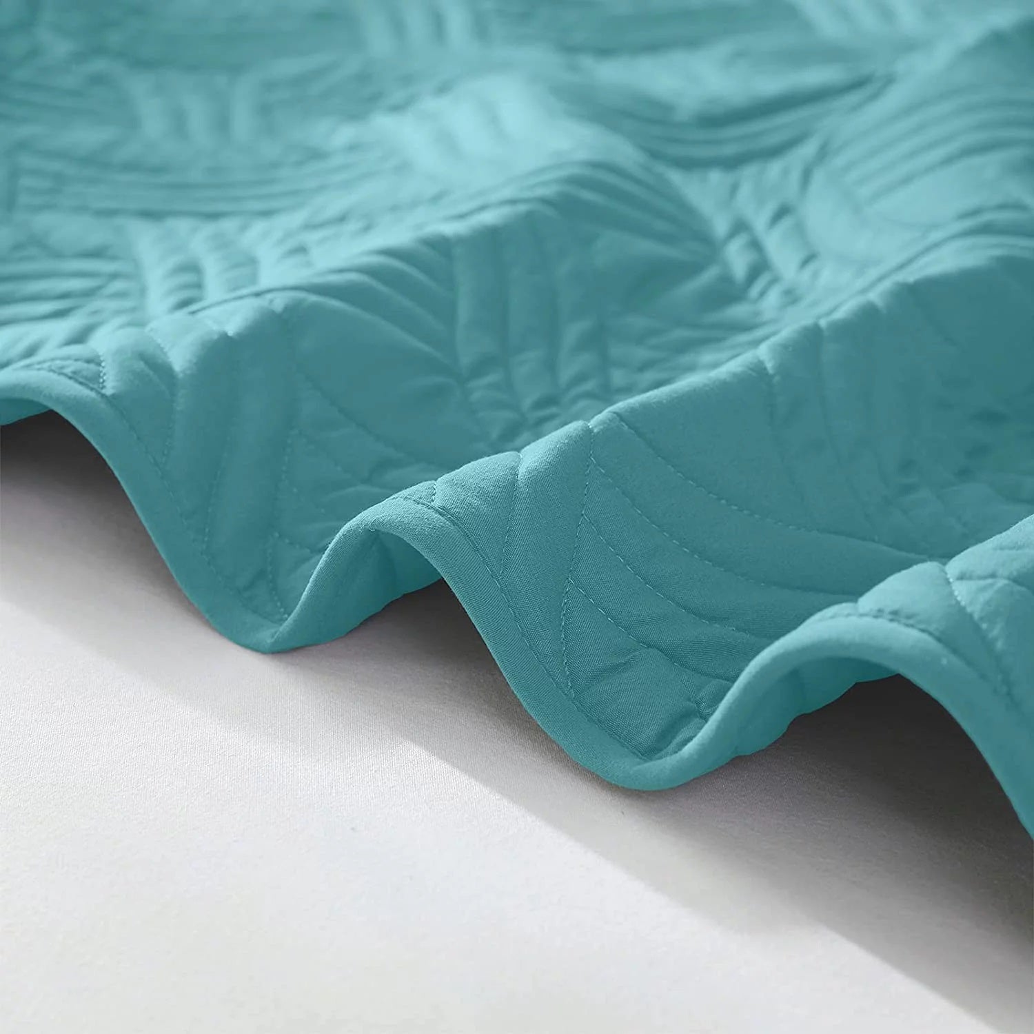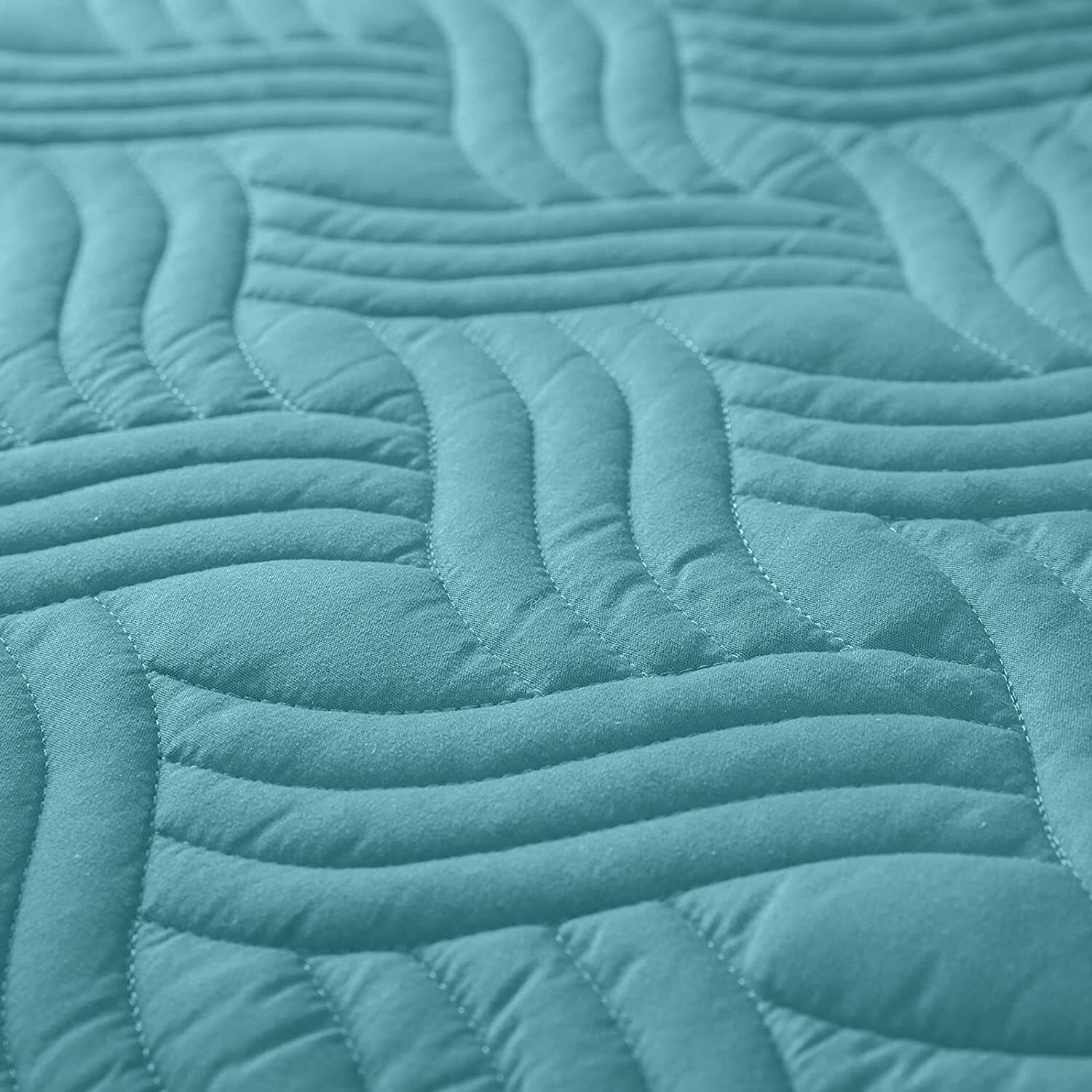 Whale Flotilla Quilt Set Queen Size, Soft Microfiber Lightweight Bedspread Coverlet Bed Cover (Wave Pattern) for All Seasons, Turquoise, 3 Pieces (Includes 1 Quilt, 2 Shams)