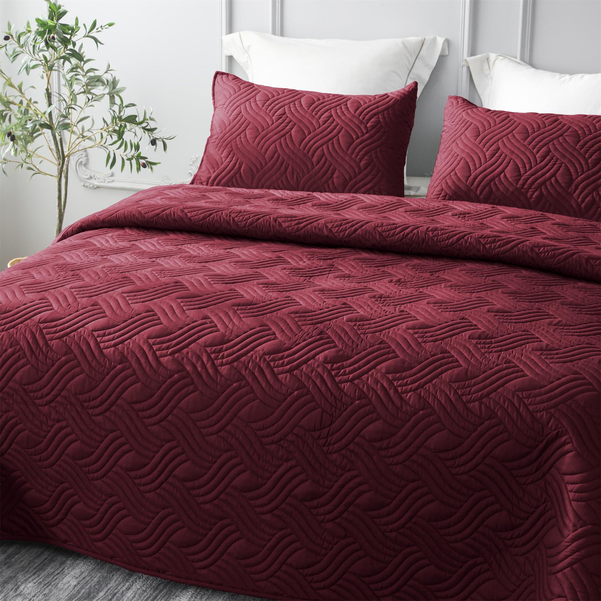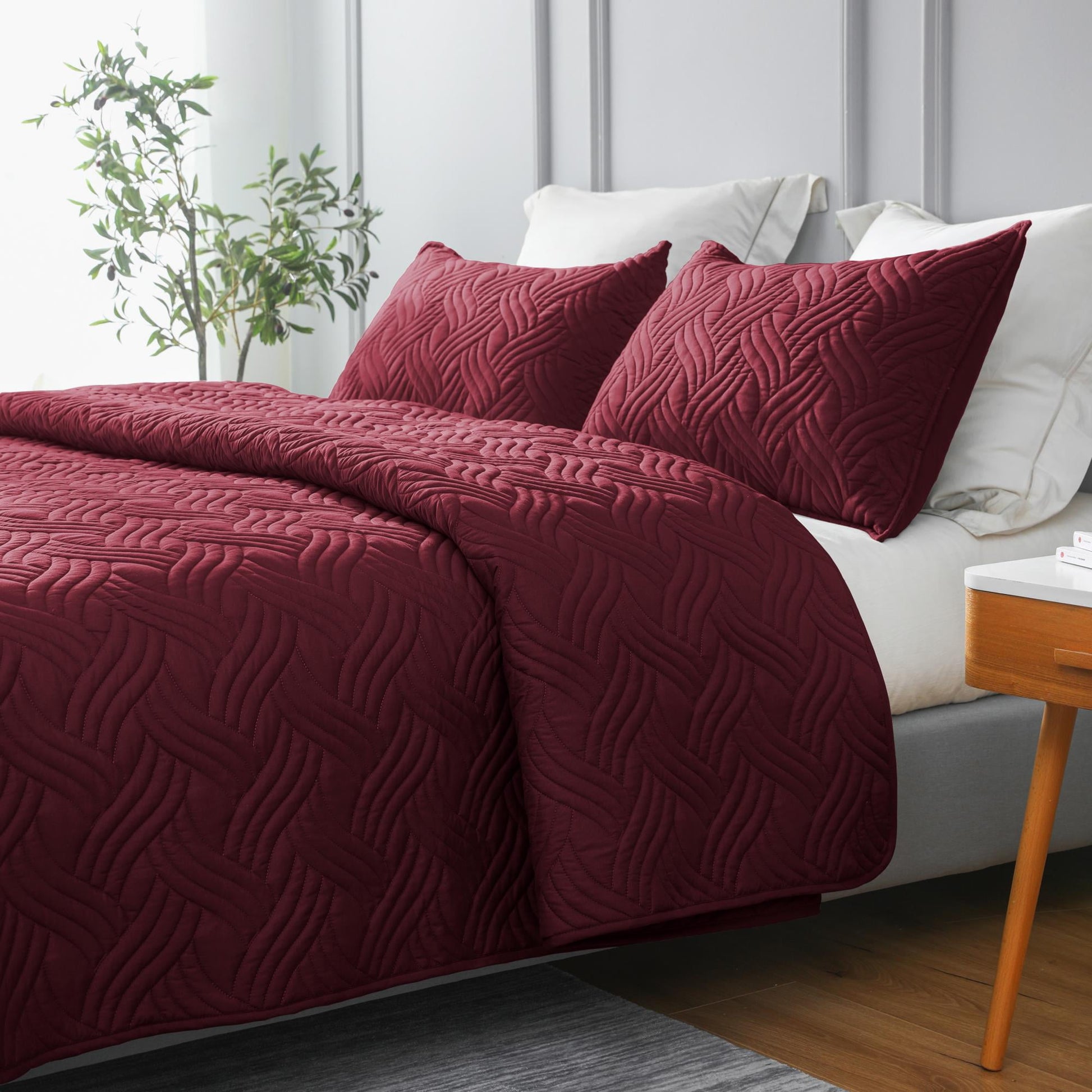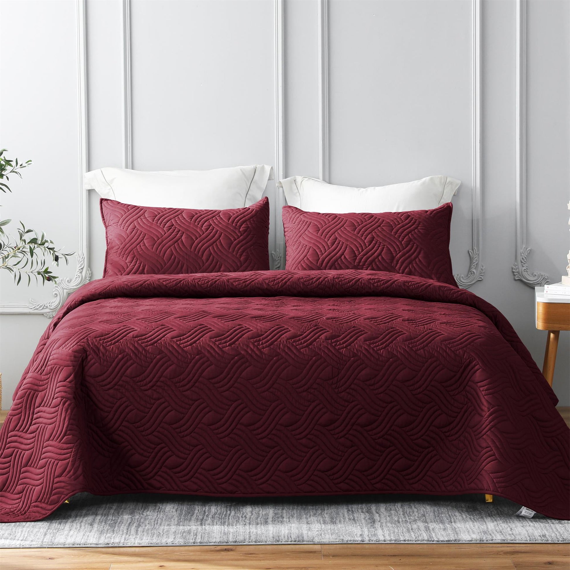 Whale Flotilla Quilt Set Twin Size, Soft Microfiber Lightweight Bedspread Coverlet Bed Cover (Wave Pattern) for All Seasons, Red, 2 Pieces (Includes 1 Quilt, 1 Shams)