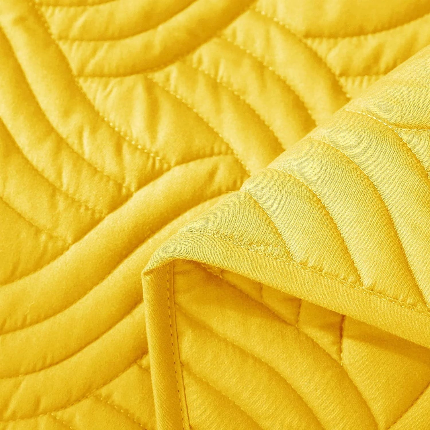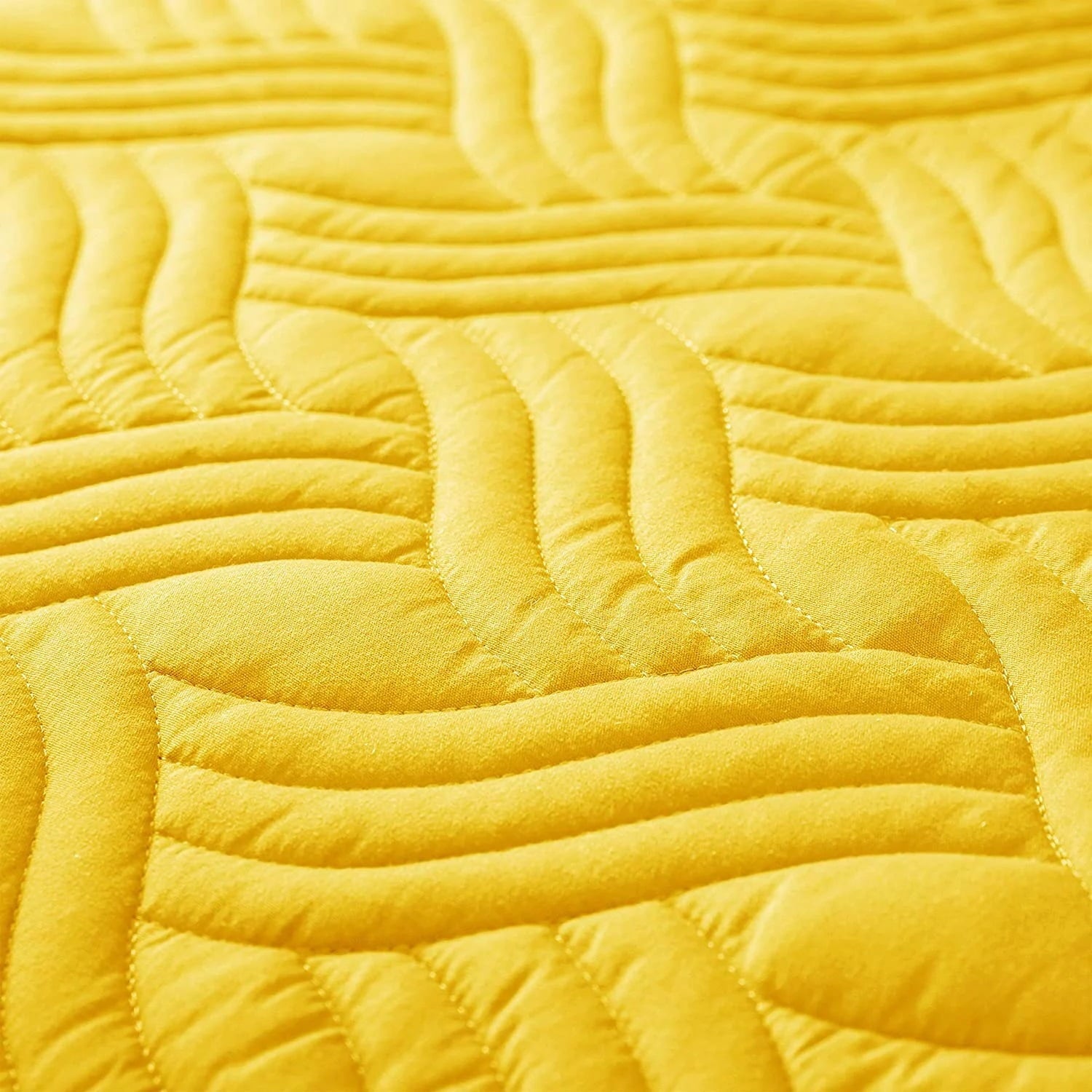 Whale Flotilla Quilt Set Twin Size, Soft Microfiber Lightweight Bedspread Coverlet Bed Cover (Wave Pattern) for All Seasons, Yellow, 2 Pieces (Includes 1 Quilt, 1 Sham)