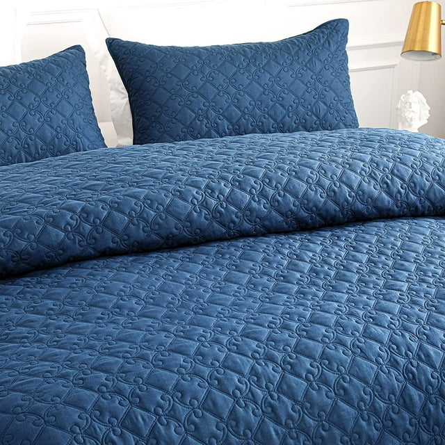 <p>Made of Lightweight well-made brushed microfiber and the filling is 140 GSM polyester, which is suitable for all seasons. The quilt set is soft & "cottony" and will soften after washing.</p><p> </p><p>We offered three size for customers, twin size, queen size and king size. Compared to other quilt, whale flotilla quilt set is much longer that could cover your bed. Twin size quilt set includes 1 quilt (68"x88"), 1 standard pillow shams (20"x26"). Queen size quilt set includes 1 quilt (96"x88"), two standard pillow shams (20"x26"). King size quilt set includes 1 quilt (96"x104"), two standard pillow shams (20"x36").</p><p> </p><p>Delicate geometric quilted stitching in solid color, easy to match your bedroom decor, providing you an elegant and classic feeling. A prefect choice for your home decoration.</p><p> </p><p>Reversible quilt is not too thick but keep you warm and comfortable year round. In the winter, you can add a comforter underneath. Lightweight, Wear-resistant bedspread sets are perfect for family.</p><p> ?</p><p>Machine wash in cold water on gentle cycle, only non-chlorine bleach when needed, tumble dry on low heat. No shrinkage, No pilling, No colour fading and No unravelling after washing.</p><p></p>The king quilt set includes 1 quilt (96"x104"), two king pillow shams (20"x36"). Compared to other king quilt, the quilt is long enough to cover your bed. If you need a quilt that drapes all the way to the floor, you may have a low bed or choose a larger size.Made of Lightweight well-made brushed microfiber and the filling is 140 GSM polyester, which is suitable for all seasons. This king quilt is soft & "cottony" and will soften after washing.Delicate geometric quilted stitching in solid color, easy to match your bedroom decor, providing you an elegant and classic feeling. A prefect choice for your home decoration.Reversible quilt is not too thick but keep you warm and comfortable year round. In the winter, you can add a comforter underneath. Lightweight, Wear-resistant bedspread sets are perfect for family. |