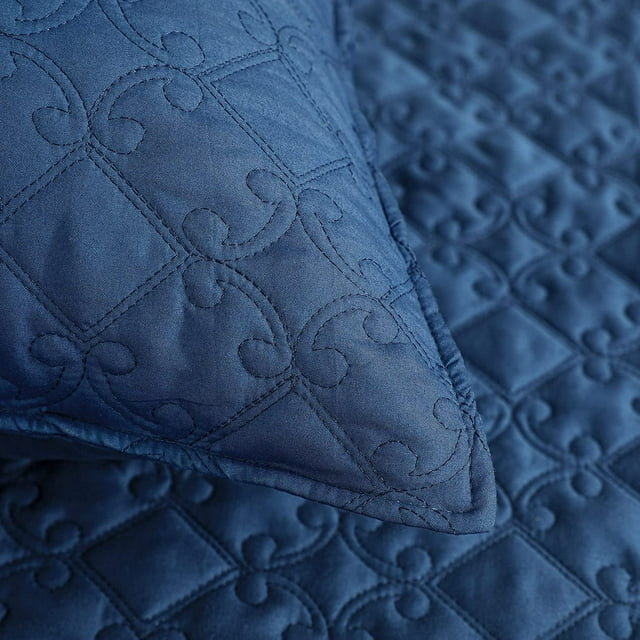 Whale Flotilla Quilt Set King Size, Soft Microfiber Lightweight Bedspread Coverlet Bed Cover (Diamond Pattern) for All Seasons, Navy, 3 Pieces (Includes 1 Quilt, 2 Shams)