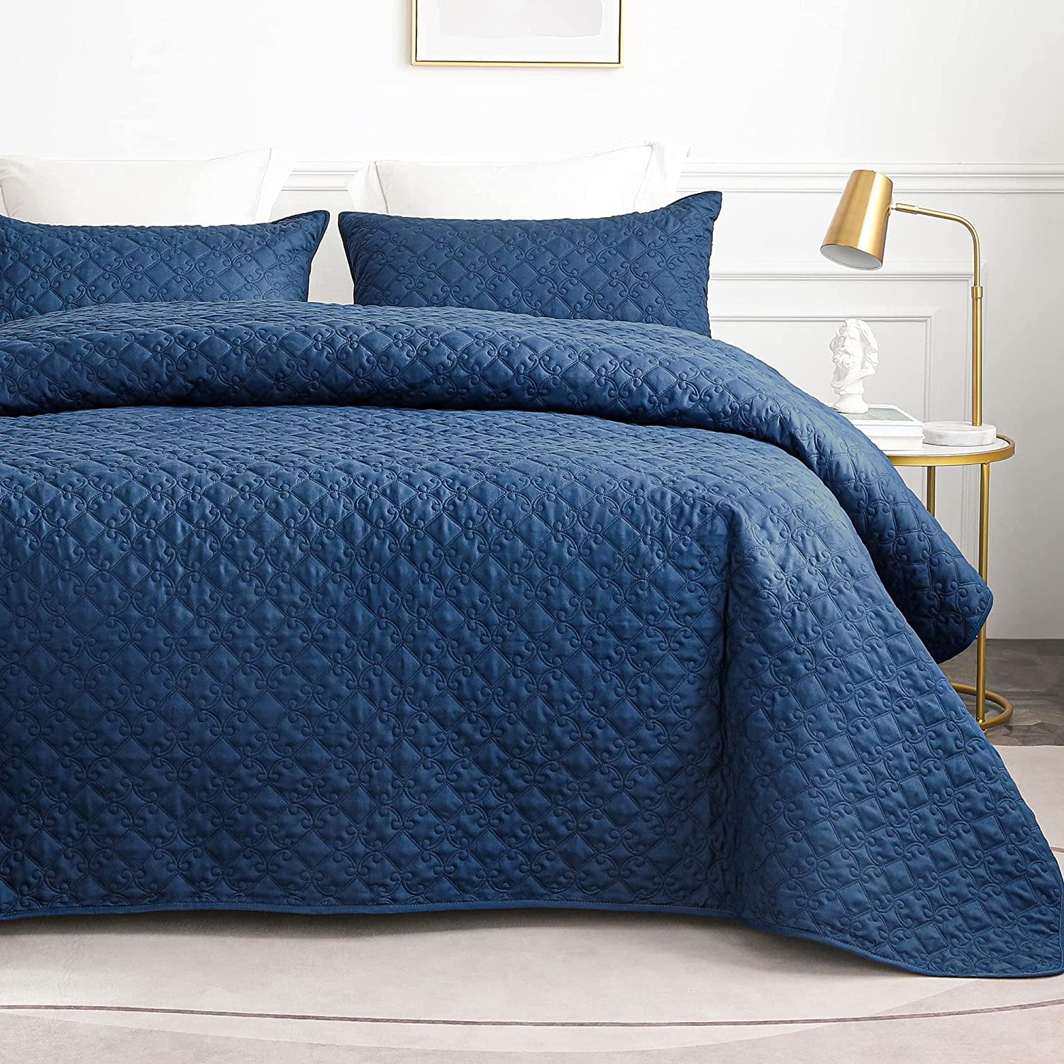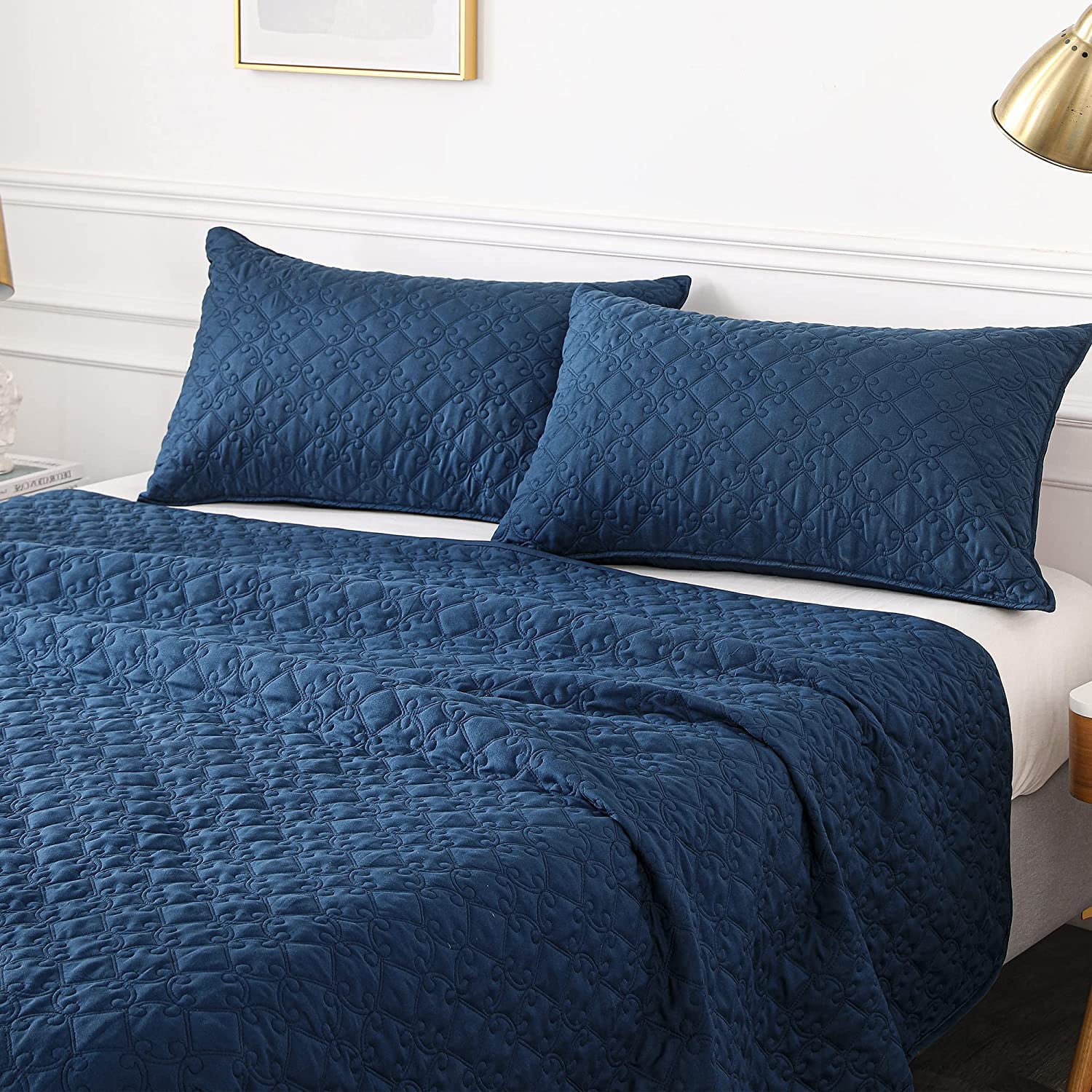 The queen quilt set includes 1 quilt (96"x88"), two standard pillow shams (20"x26"). Compared to other queen quilt, the quilt is long enough to cover your bed. If you need a quilt that drapes all the way to the floor, you may have a low bed or choose a larger size.Made of Lightweight well-made brushed microfiber and the filling is 140 GSM polyester, which is suitable for all seasons. This king quilt is soft & "cottony" and will soften after washing.Delicate geometric quilted stitching in solid color, easy to match your bedroom decor, providing you an elegant and classic feeling. A prefect choice for your home decoration.Reversible quilt is not too thick but keep you warm and comfortable year round. In the winter, you can add a comforter underneath. Lightweight, Wear-resistant bedspread sets are perfect for family.Share