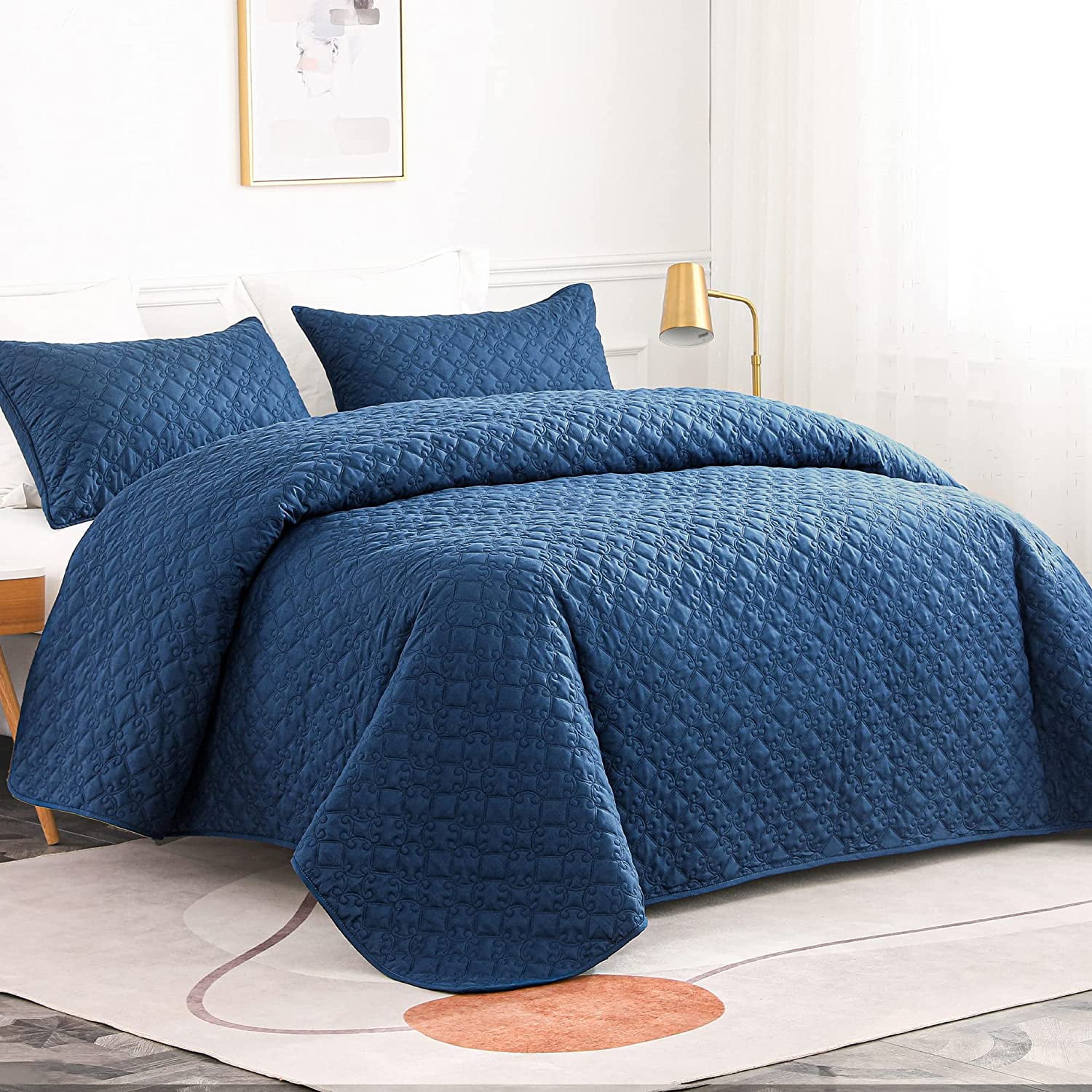 Whale Flotilla Quilt Set Queen Size, Soft Microfiber Lightweight Bedspread Coverlet Bed Cover (Diamond Pattern) for All Seasons, Navy, 3 Pieces (Includes 1 Quilt, 2 Shams) ?-